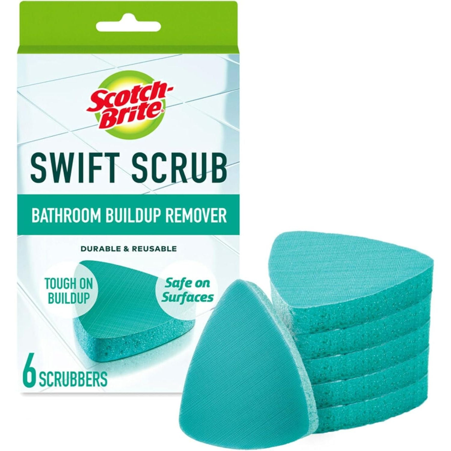- AMERICA’S #1 SELLING SCRUB SPONGE BRAND: One package of Scotch-Brite Swift Scrub Bathroom Buildup Remover Scrub Pads; one pack contains two bath cleaner pads