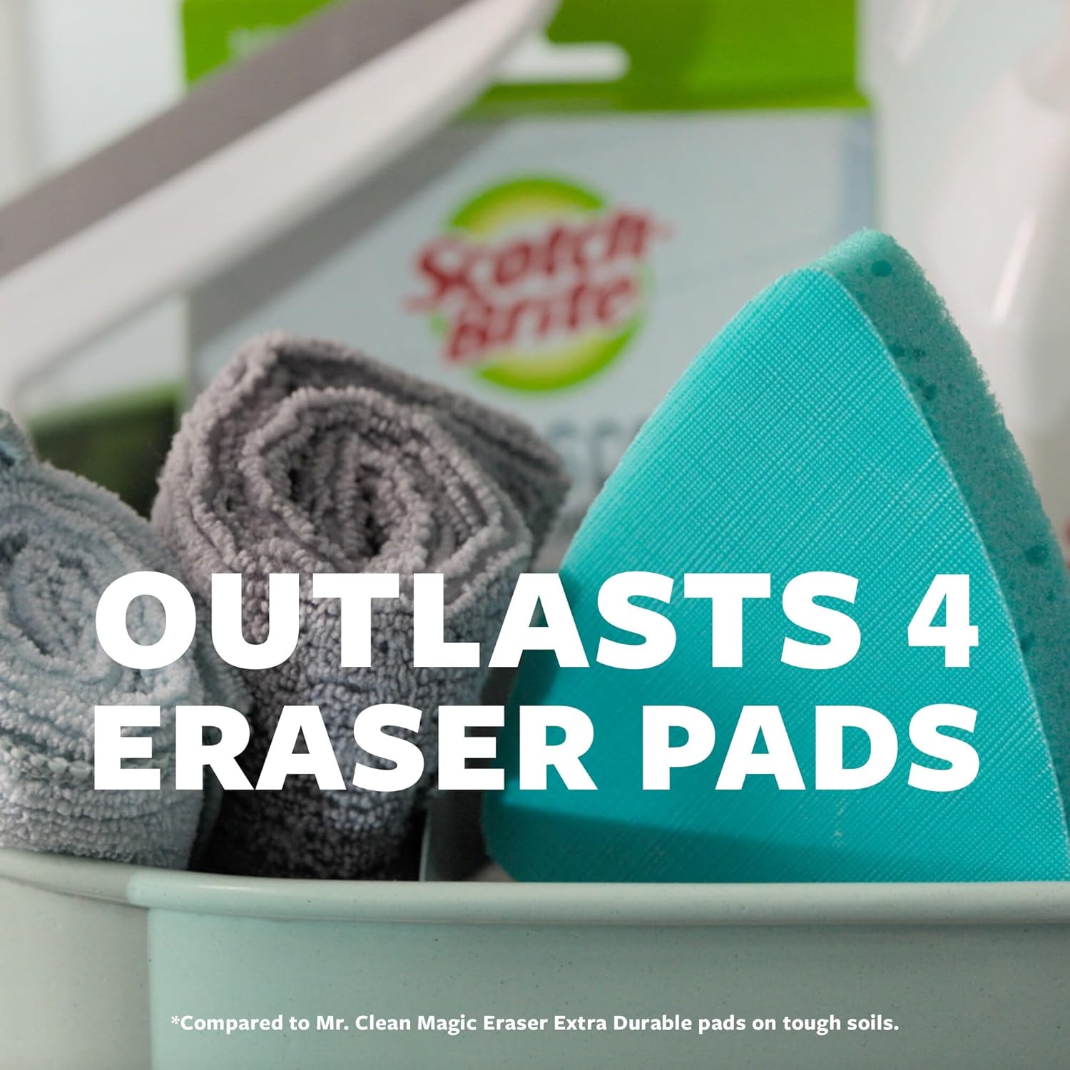 - 3X FASTER CLEANING: Scrubbing pad cuts through buildup three times faster than eraser pads [compared to Mr. Clean Magic Eraser Extra Durable pads on tough soils]
