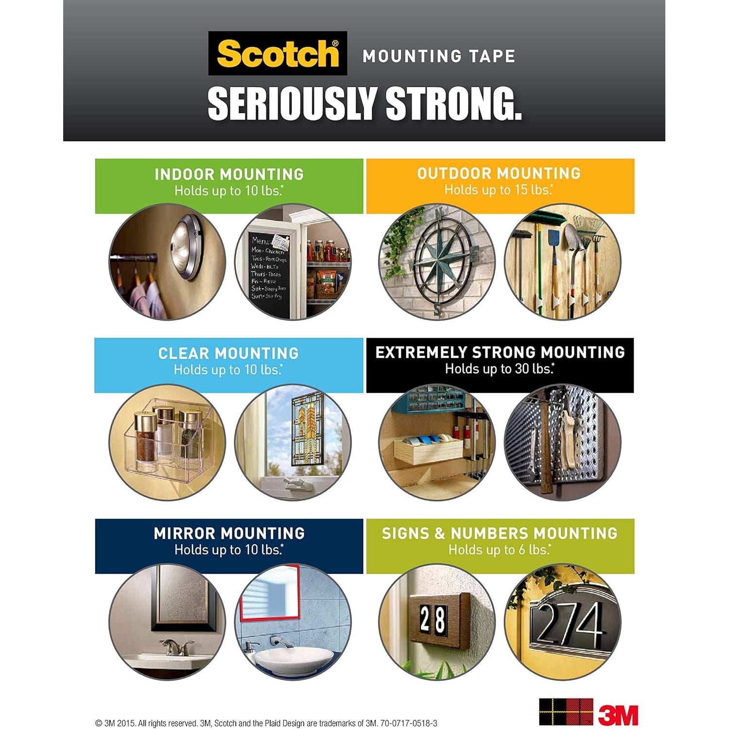 - Industrial-strength, clear mounting tape.
