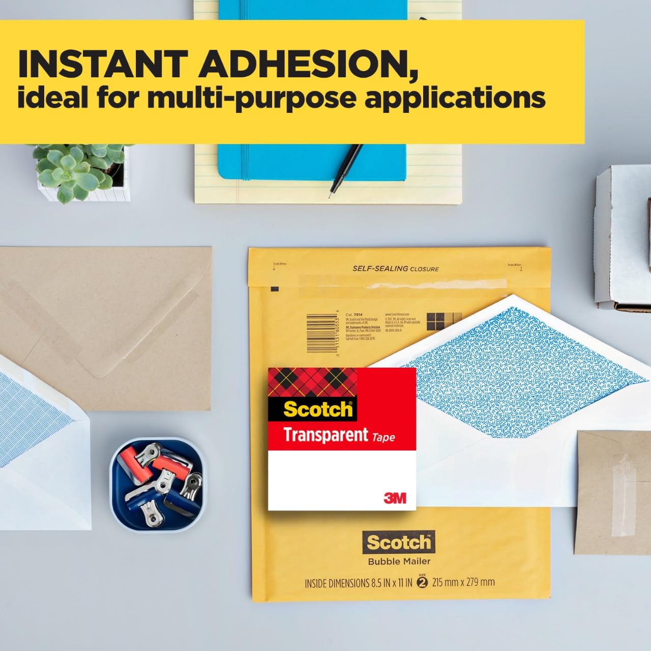 - Scotch Transparent Tape, Clear Tape Engineered for Office and Home Use, 3 Inche Core, 1 in x 2592 in, 3 Rolls