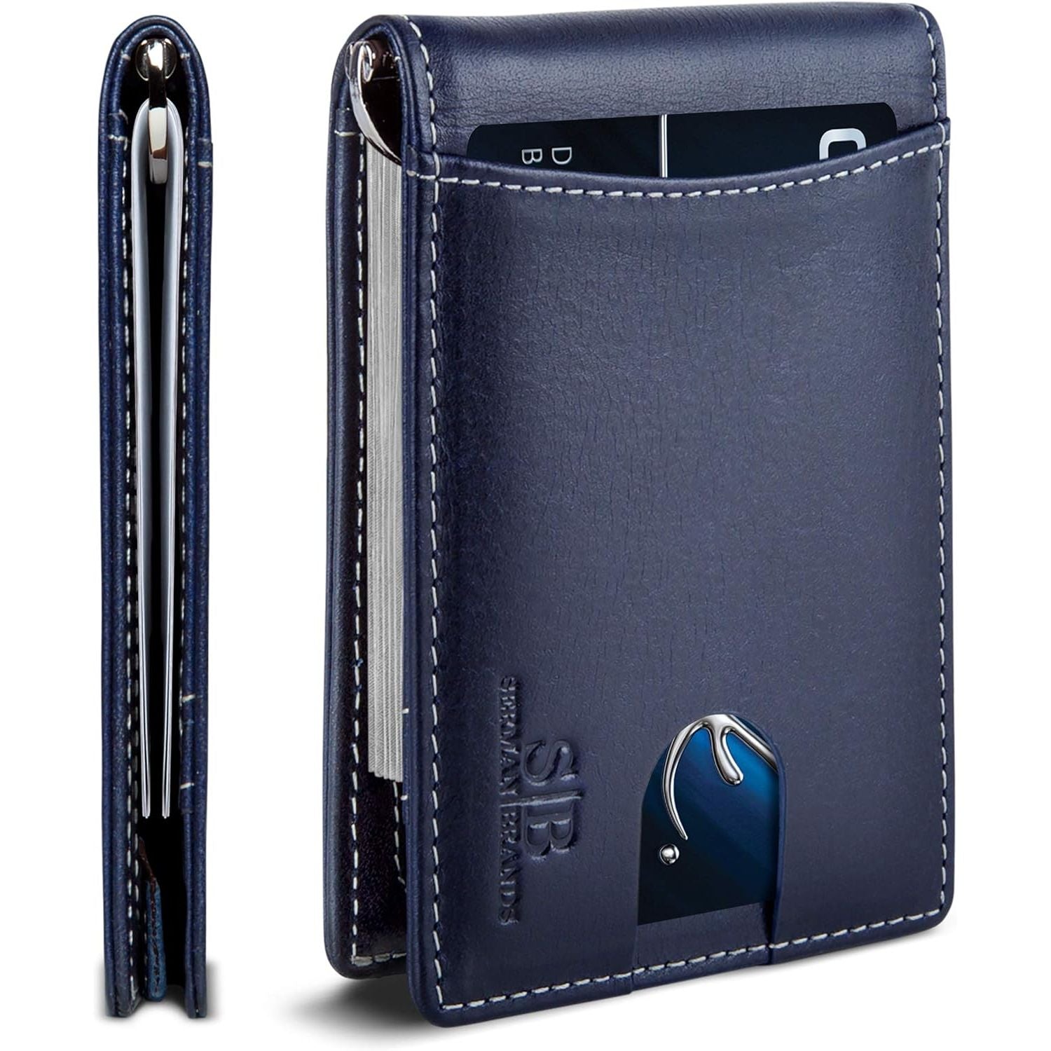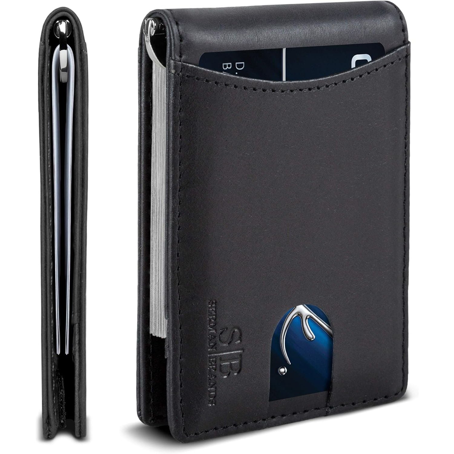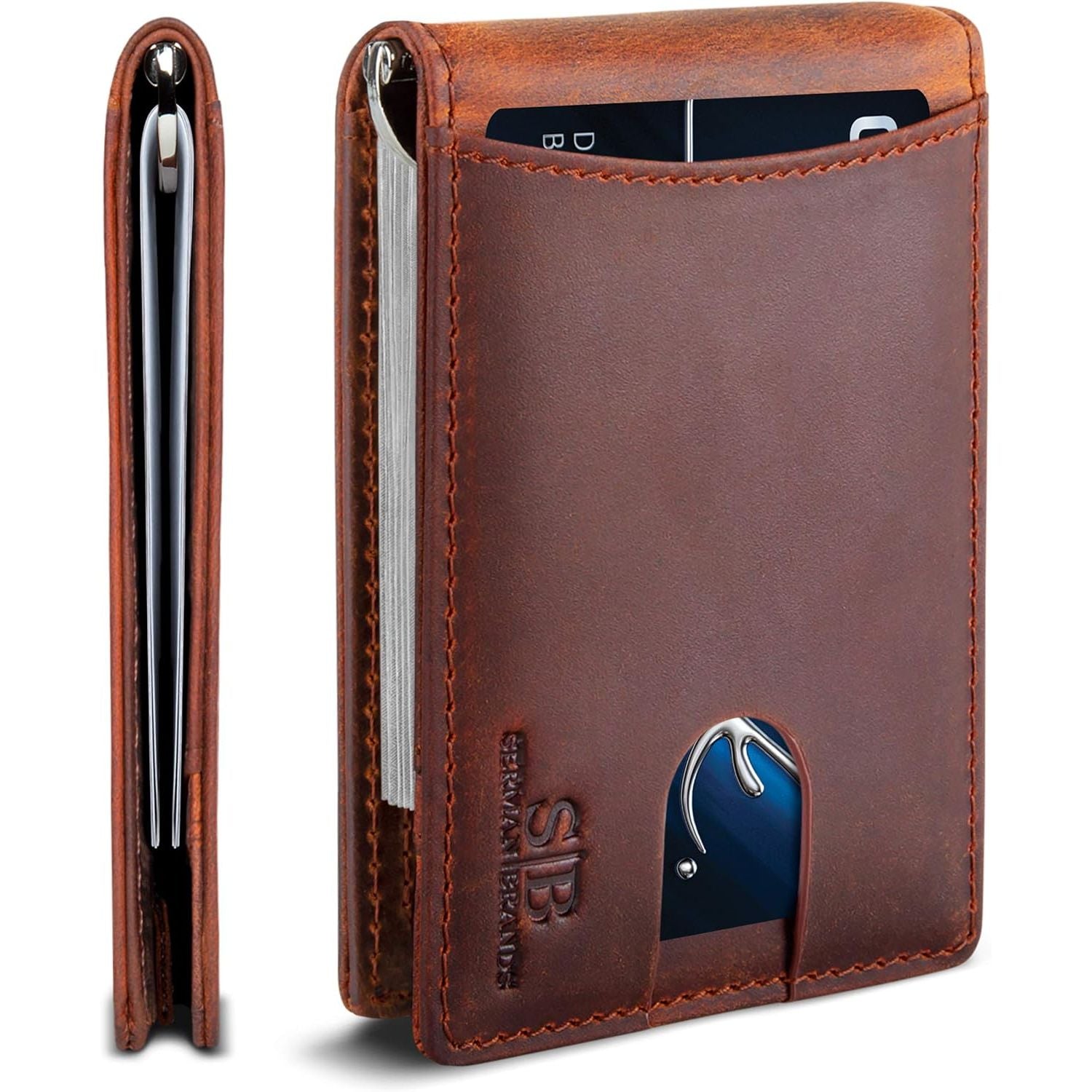 - SERMAN BRANDS RFID Blocking Slim Bifold Genuine Leather Minimalist Front Pocket Wallets for Men with Money Clip Thin Gift