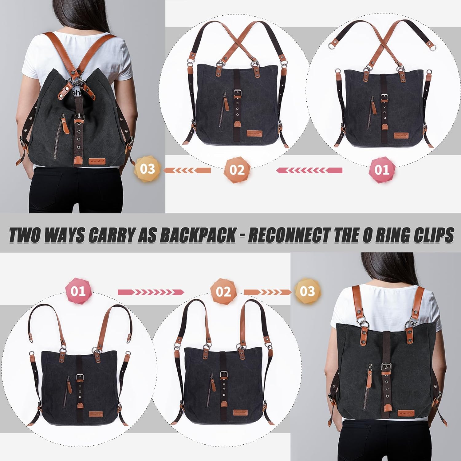 SHANGRI-LA Canvas Tote Handbag Casual Purse Shoulder Bag for Women Convertible Backpack