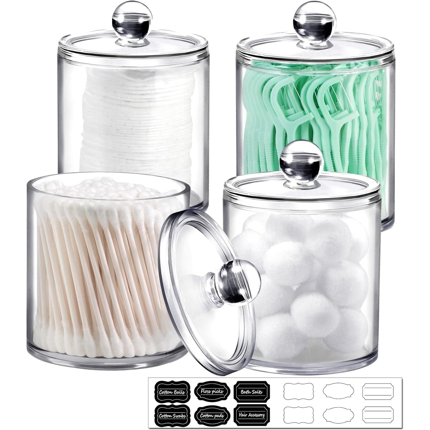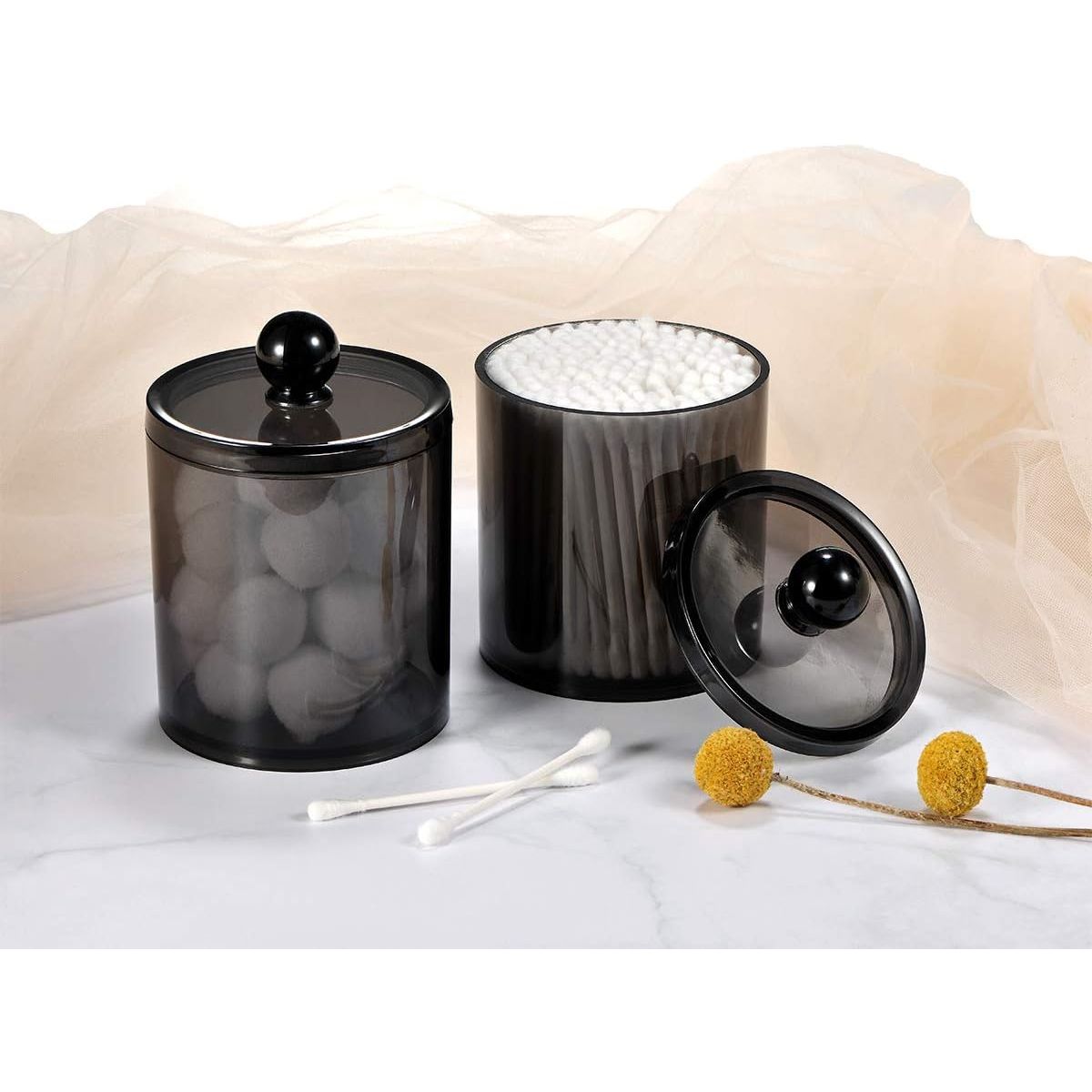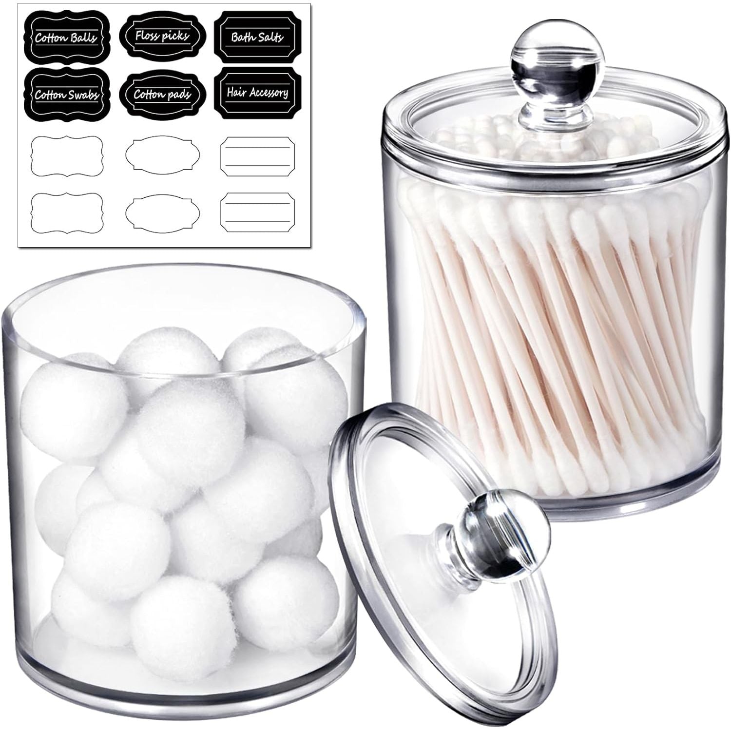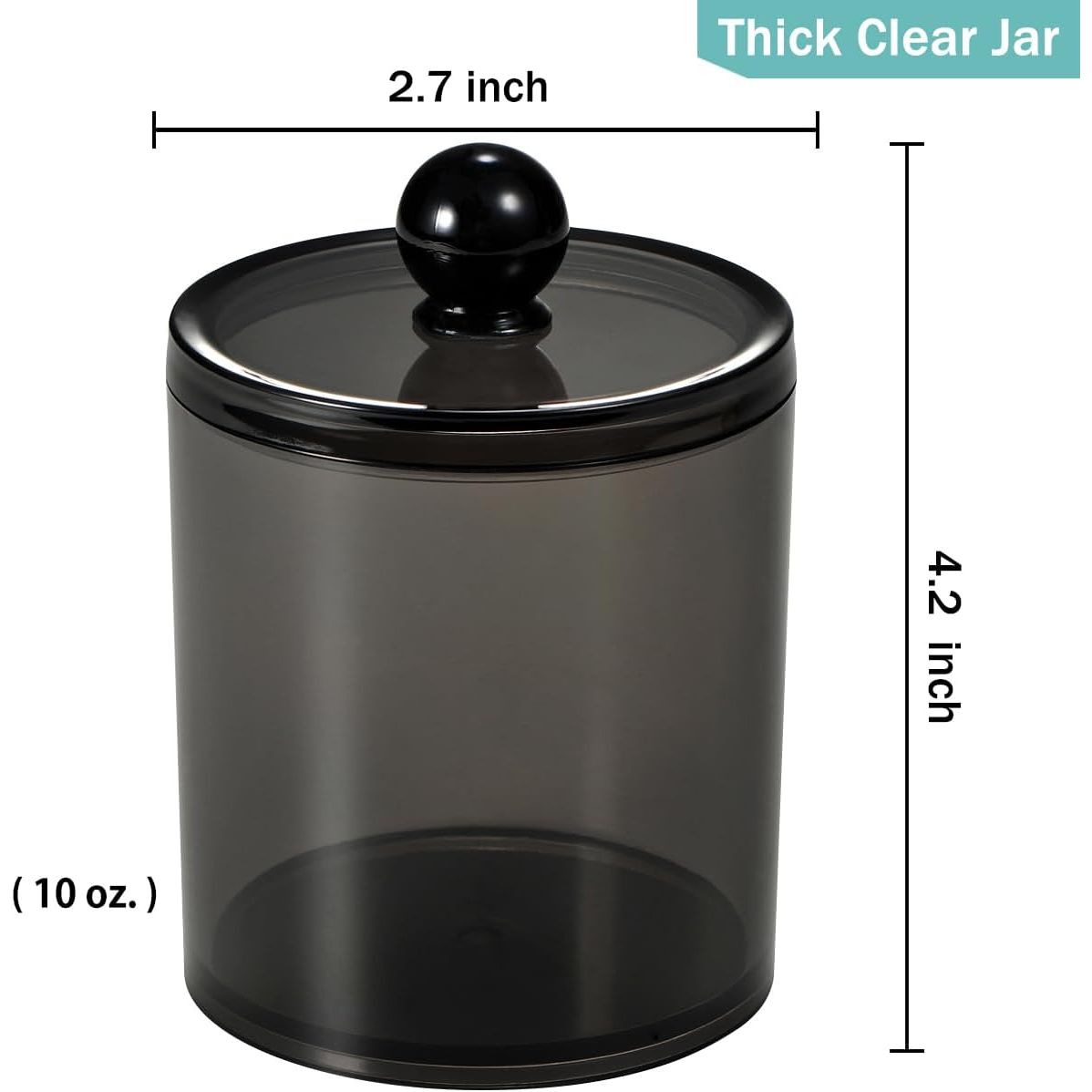 - SheeChung 2 Pack of 10 Oz. Small Clear Plastic Apothecary Jar - Qtip Dispenser Holder Bathroom Vanity Storage Canister Acrylic Jar for Cotton Balls/Swabs/Rounds,Q-tips (Black)
