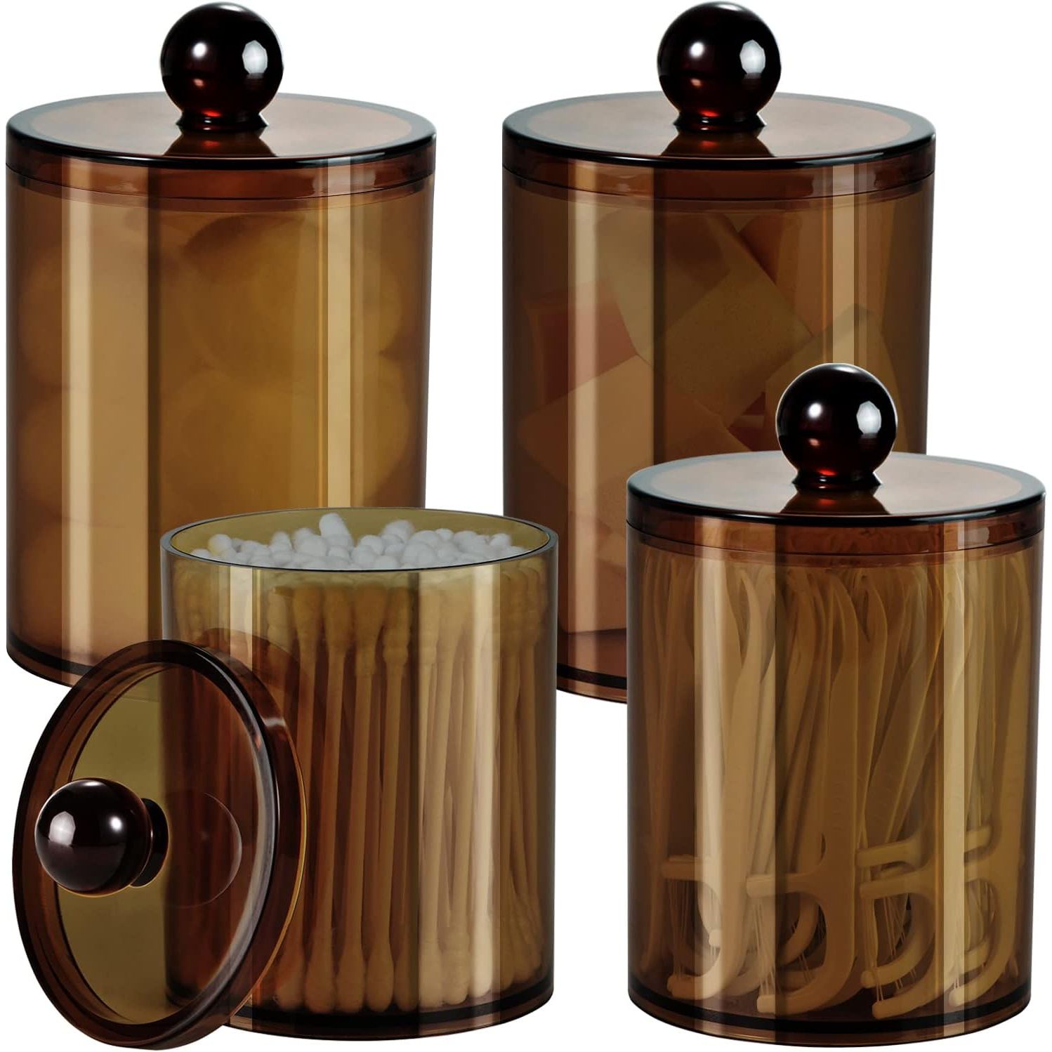 - ✅SIMPLE AND EASY TO USE: Each apothecary jar has a removable acrylic lid and a wide mouth to make accessing bathroom necessities and accessories simple, easy to set the Q-Tips perfectly in the dispenser and easy to get them out