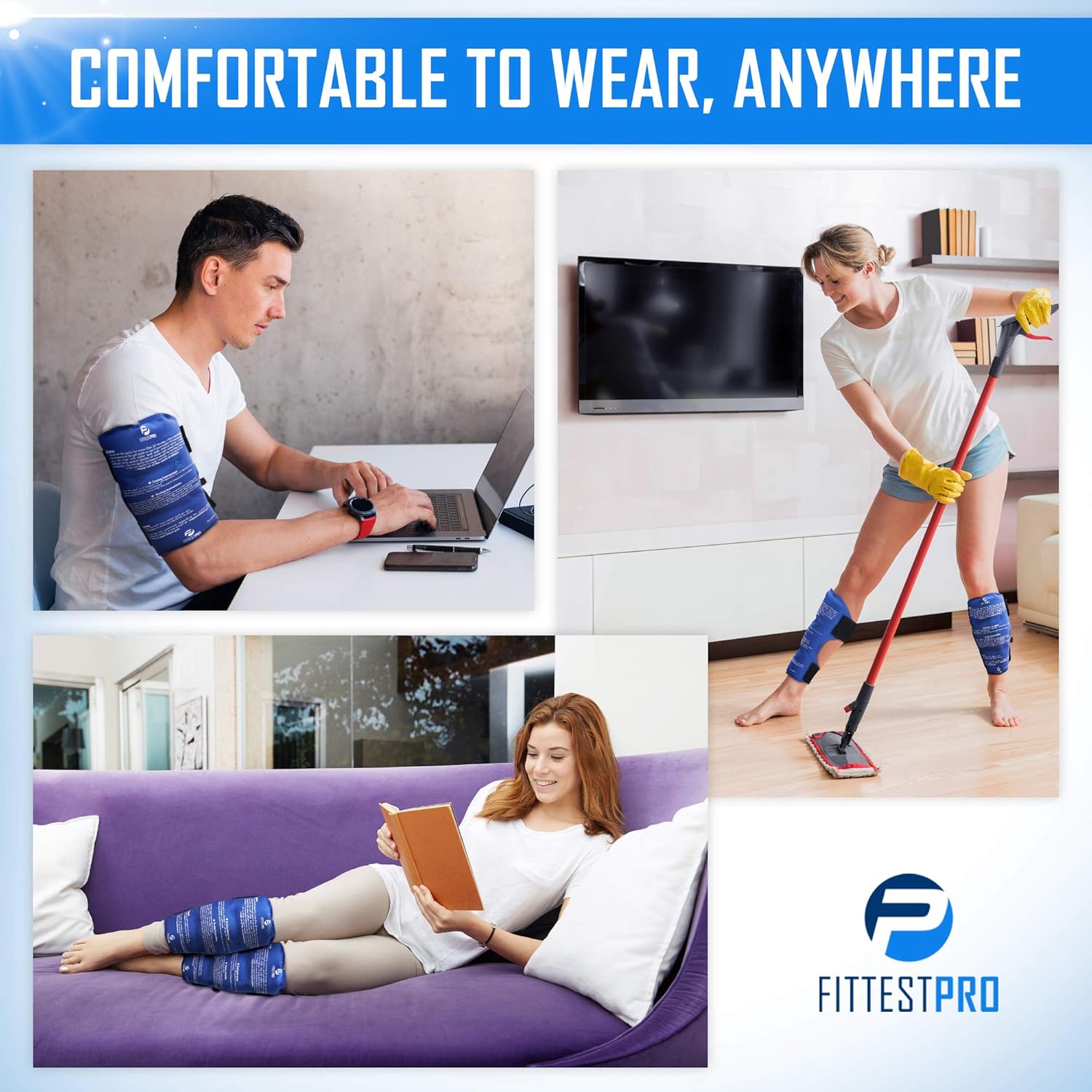 - FLEXIBLE COMPRESSION INJURY HEALING PACKS: Fittest Pro is reusable ice pack for leg or calf designed to keep you relaxed. The elastic hook and loop straps can be easily adjusted, and the size can assure that it is perfectly fit for any body type. It is an effective way to treat painful calf and shin injuries after physical activities.