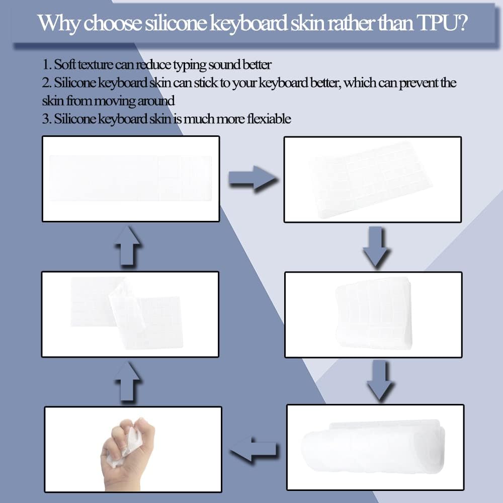 - Made of quality soft silicone material with smooth touch and thickness of 0.006 inch/0.15mm. It can reduce typing sound when typing
