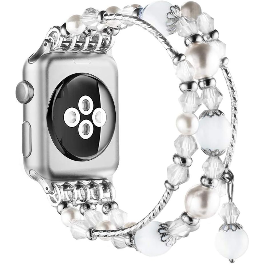 - Simpeak Beaded Bracelet Band Compatible with Apple Watch Series 10 9 8 7 6 SE 5 4 3 2 1, Women Fashion Handmade Elastic Bracelet Stretch Strap Compatible with iWatch 42mm(Series 10)/40mm/38mm/41mm