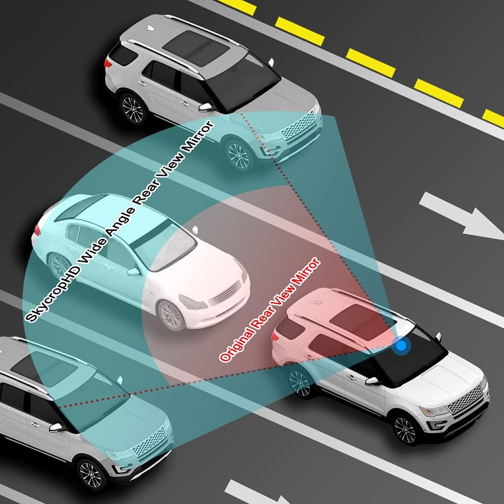 - With frameless design, strive to maximize your view, eliminate blind spots and provide more wide-angle vision than original mirror, SkycropHD new rear view mirror is a combination of beauty and safety