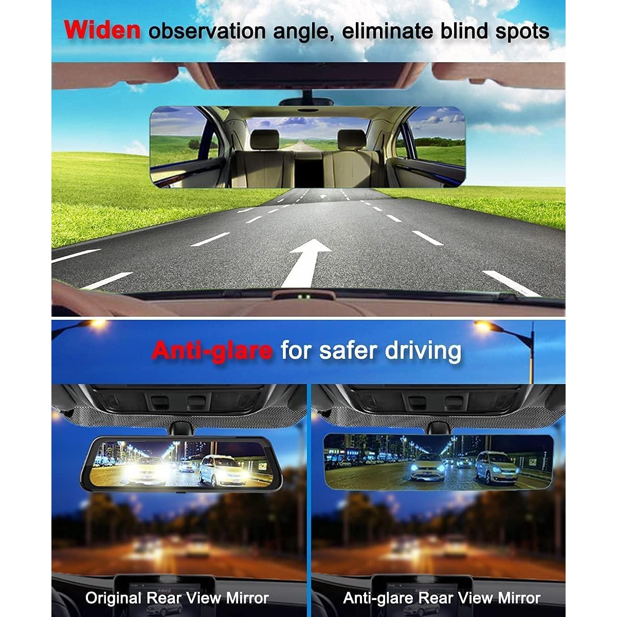 - Made of high-definition glass and coated with blue anti-glare tint, this car rearview mirror can filter out sunlight at daytime and prevents high beams from bothering you at night