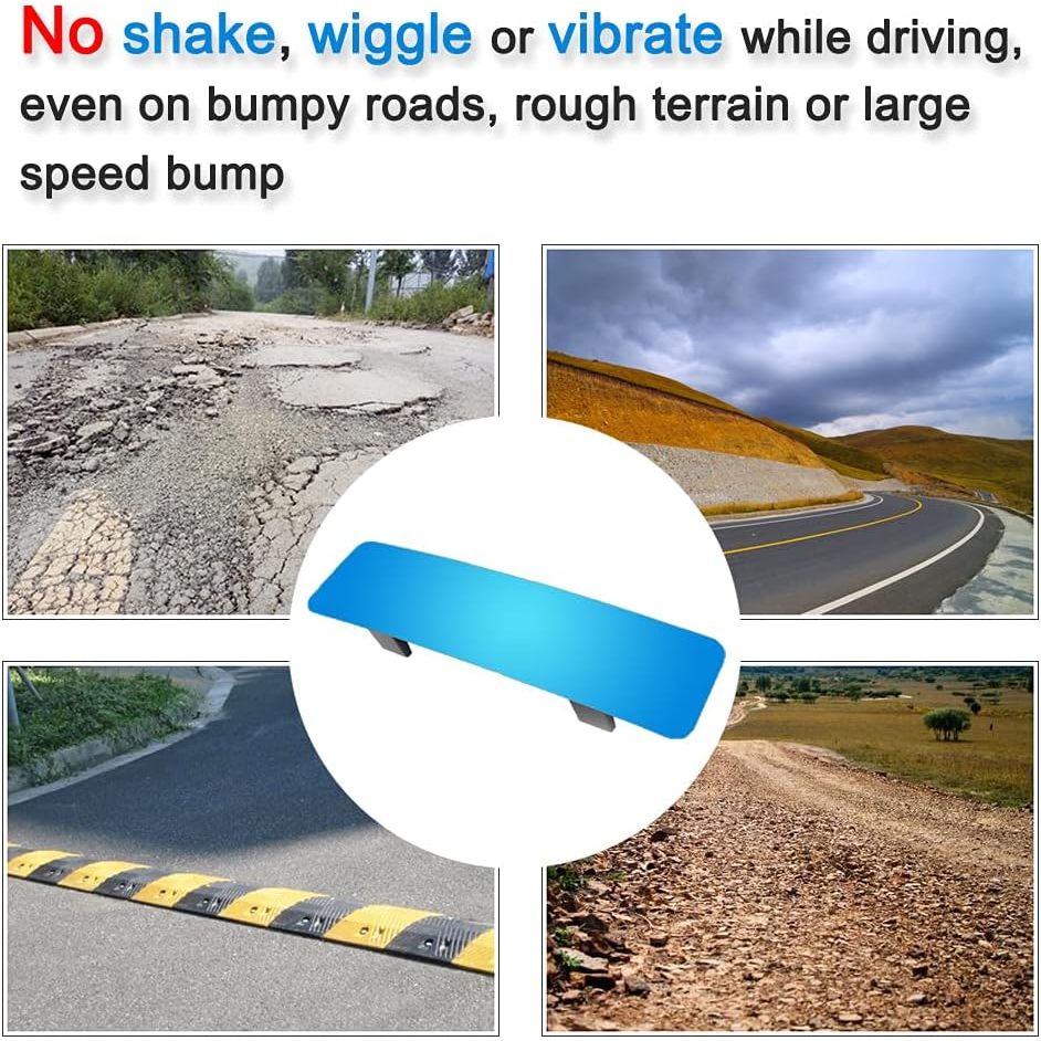 - This wide-angle rearview mirror comes with sturdy clamps. Simply clip it over your original mirror, it won’t shake, wiggle or vibrate while driving or fall off even on bumpy roads