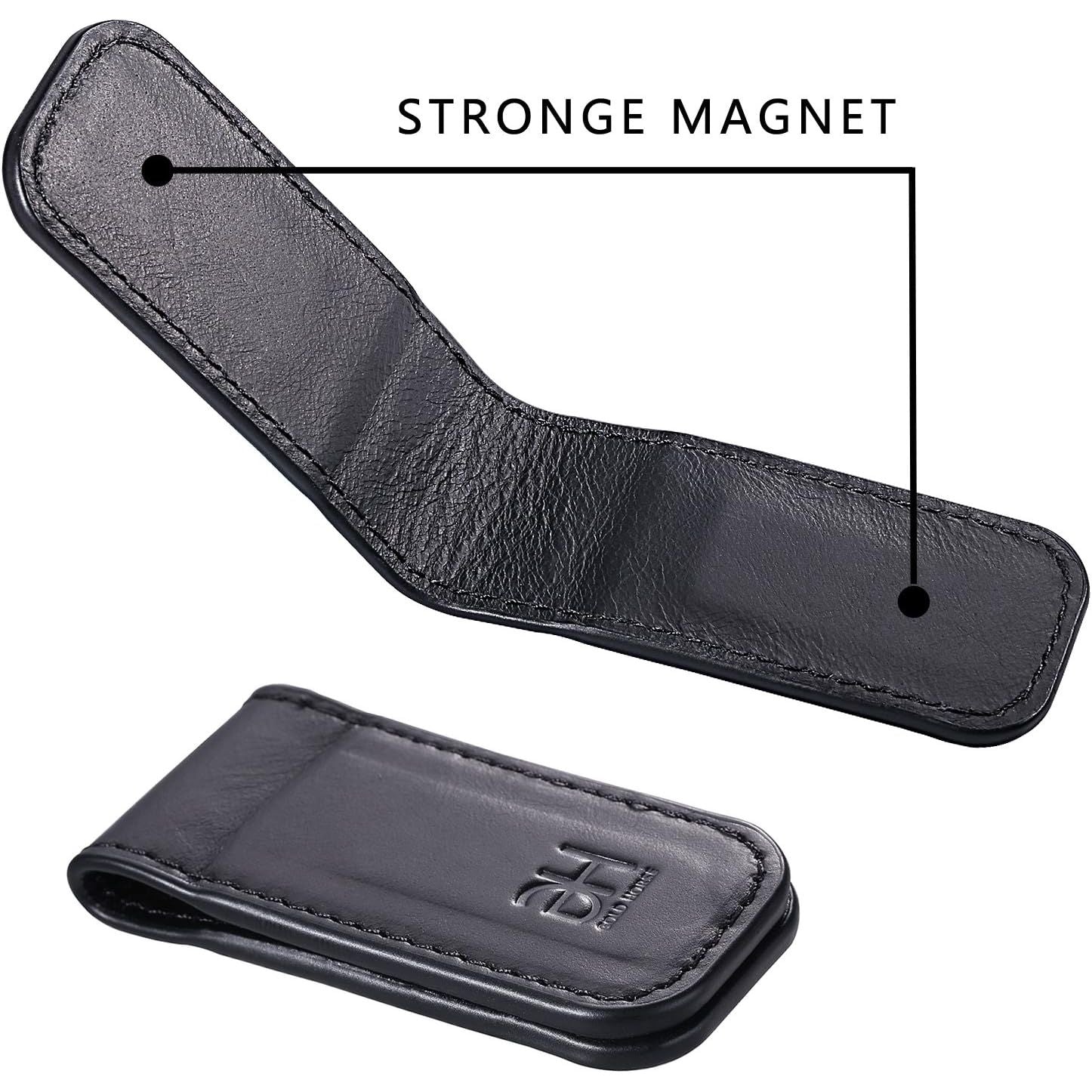 - Slim Magnetic Money Clip Genuine Leather Business Card Holder for Men, Black