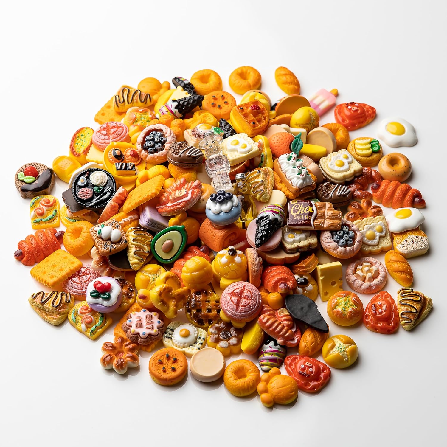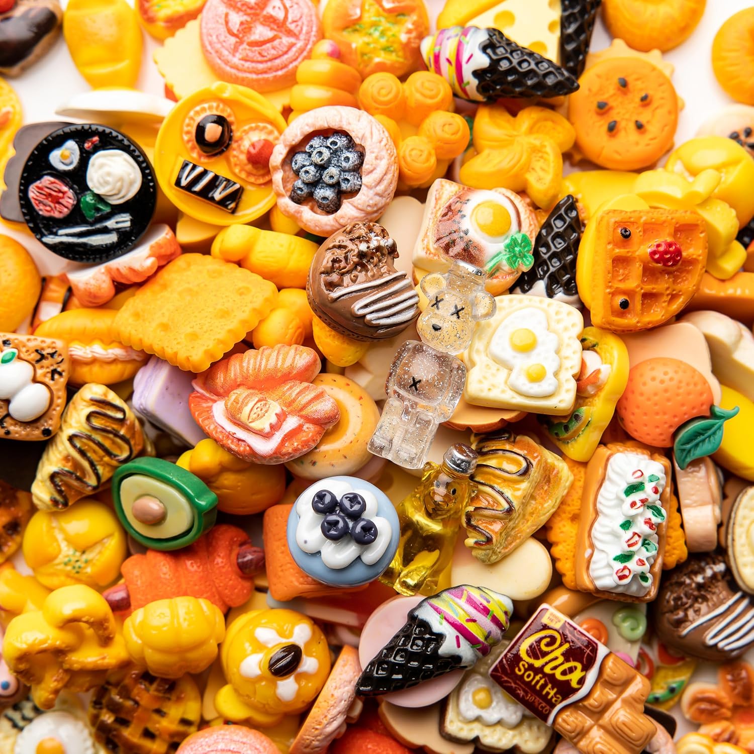 - 【Variety of styles】The resin flatback contains a variety of common foods, such as bread, fruits, drinks, cakes, burgers, etc.