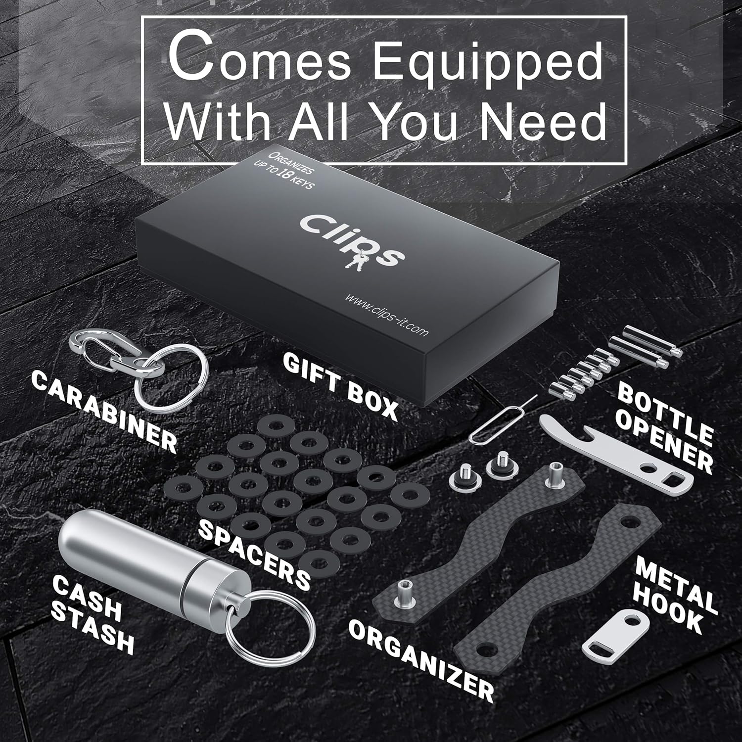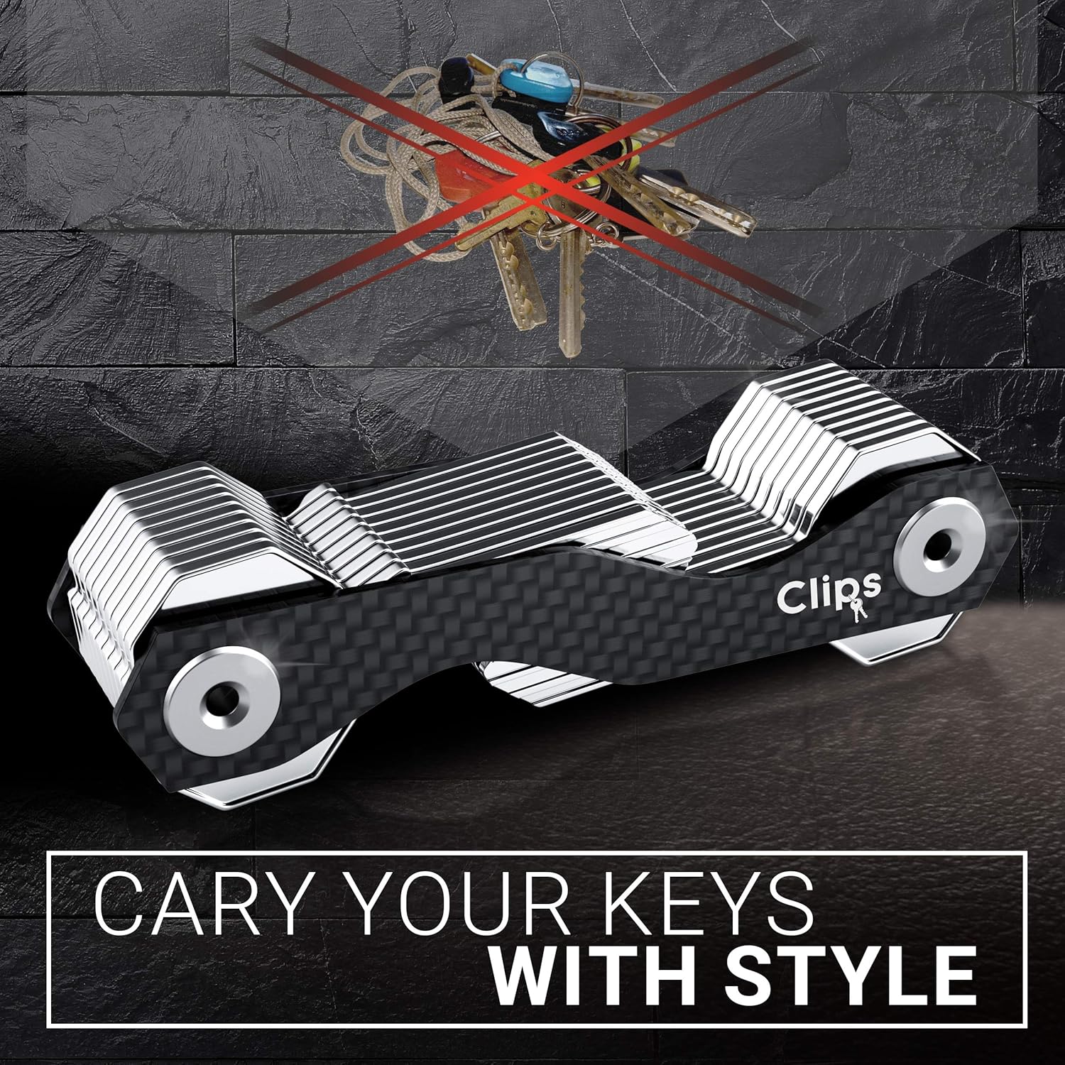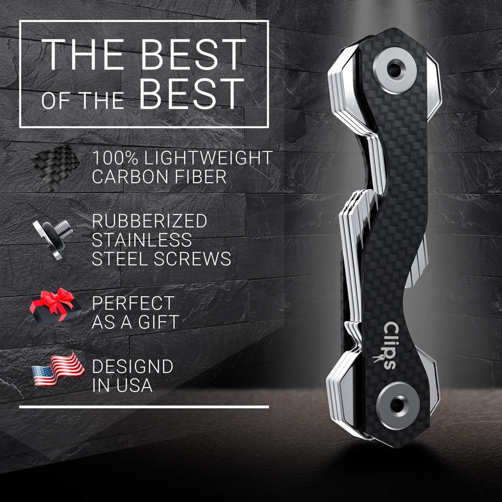 - ✅ STRONGER & LIGHTER - Clips key chain holder is made of high-quality carbon fiber, plus, anti-loosening washers are added to the screws to prevent unwanted loosening over time.