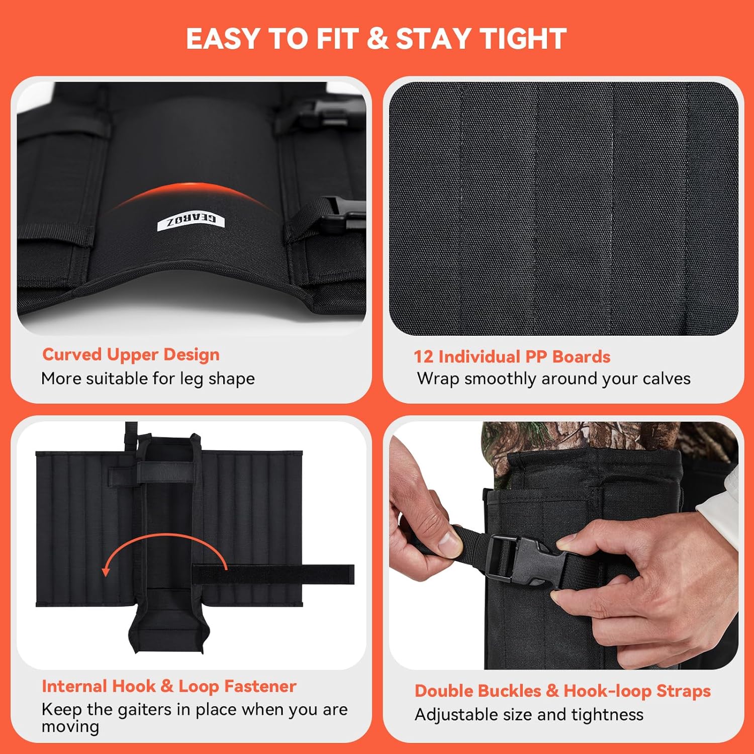 - STRONG STRUCTURE & MATERIAL: Made from 1000D Oxford and 12 separated PP boards, the snake guards provide robust defense against snake bites, which are durable and suitable for both men and women, offering effective protection.