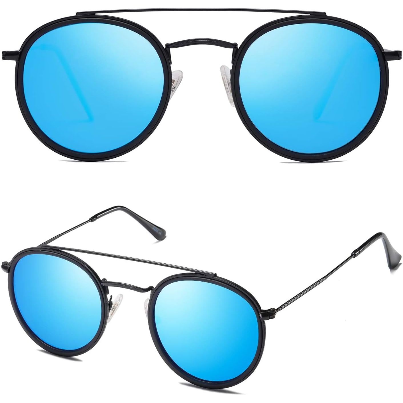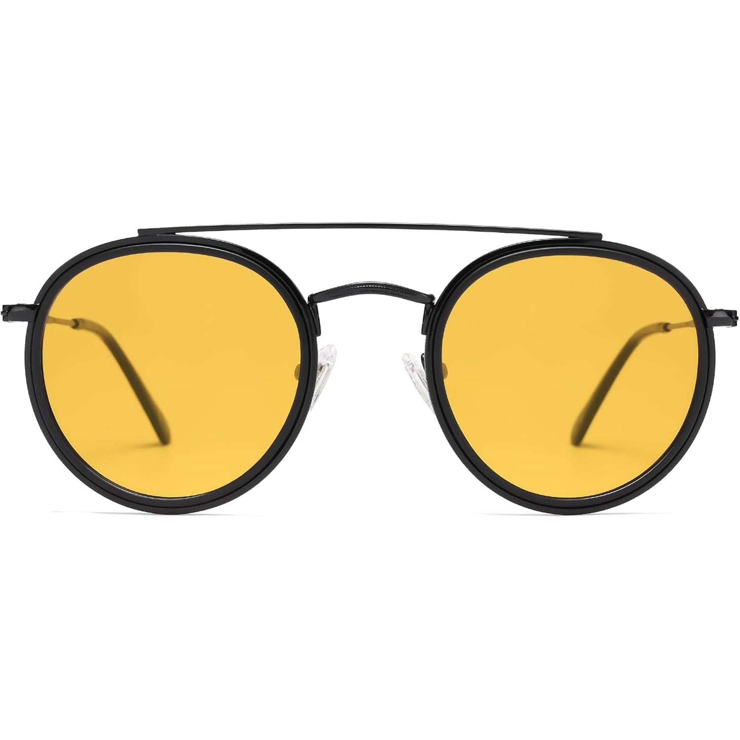 - CLASSIC RETRO ROUND STYLE - These classic retro round double bridge sunglasses will bring you a timeless look. A variety of lens colors can go with different outfits in daily fashion.