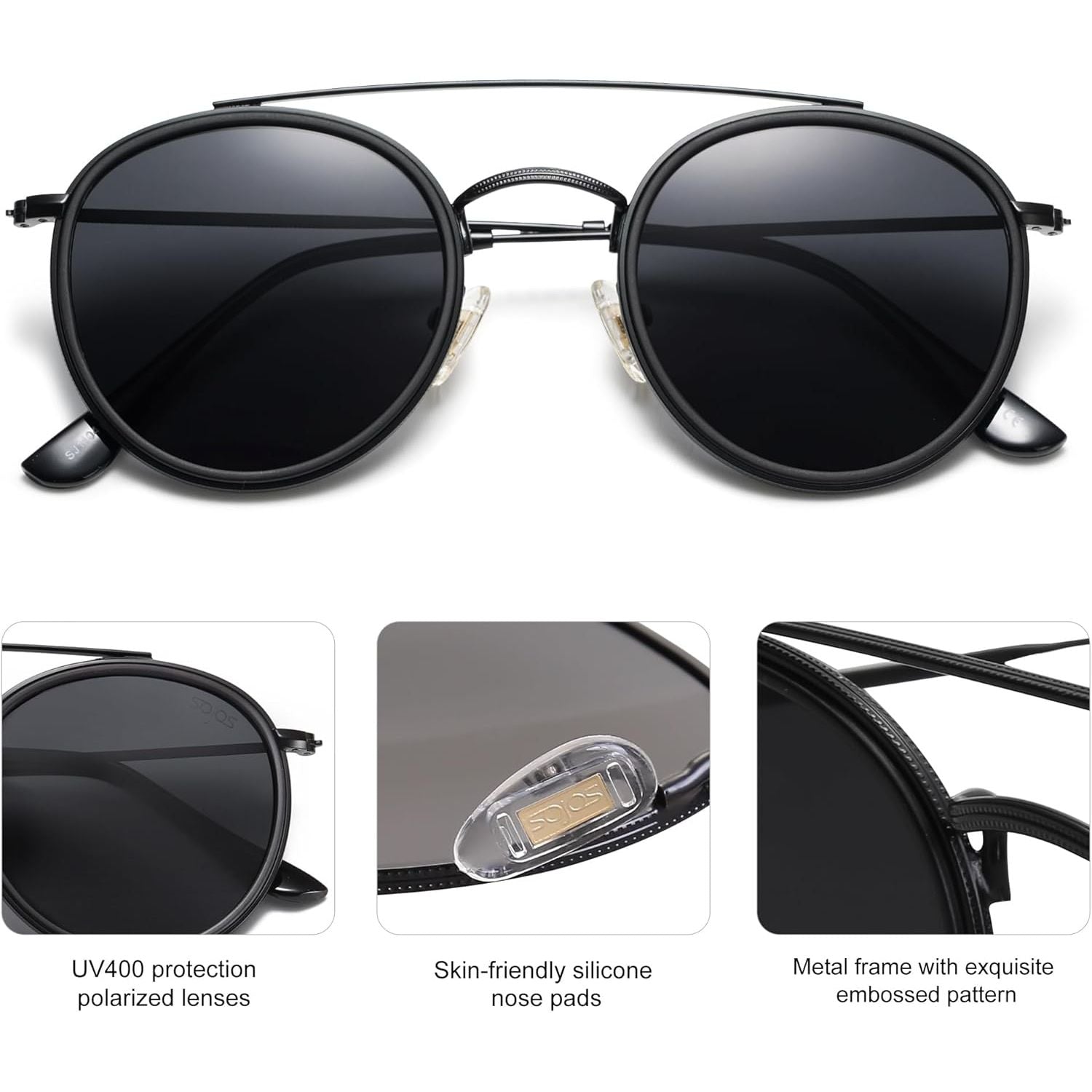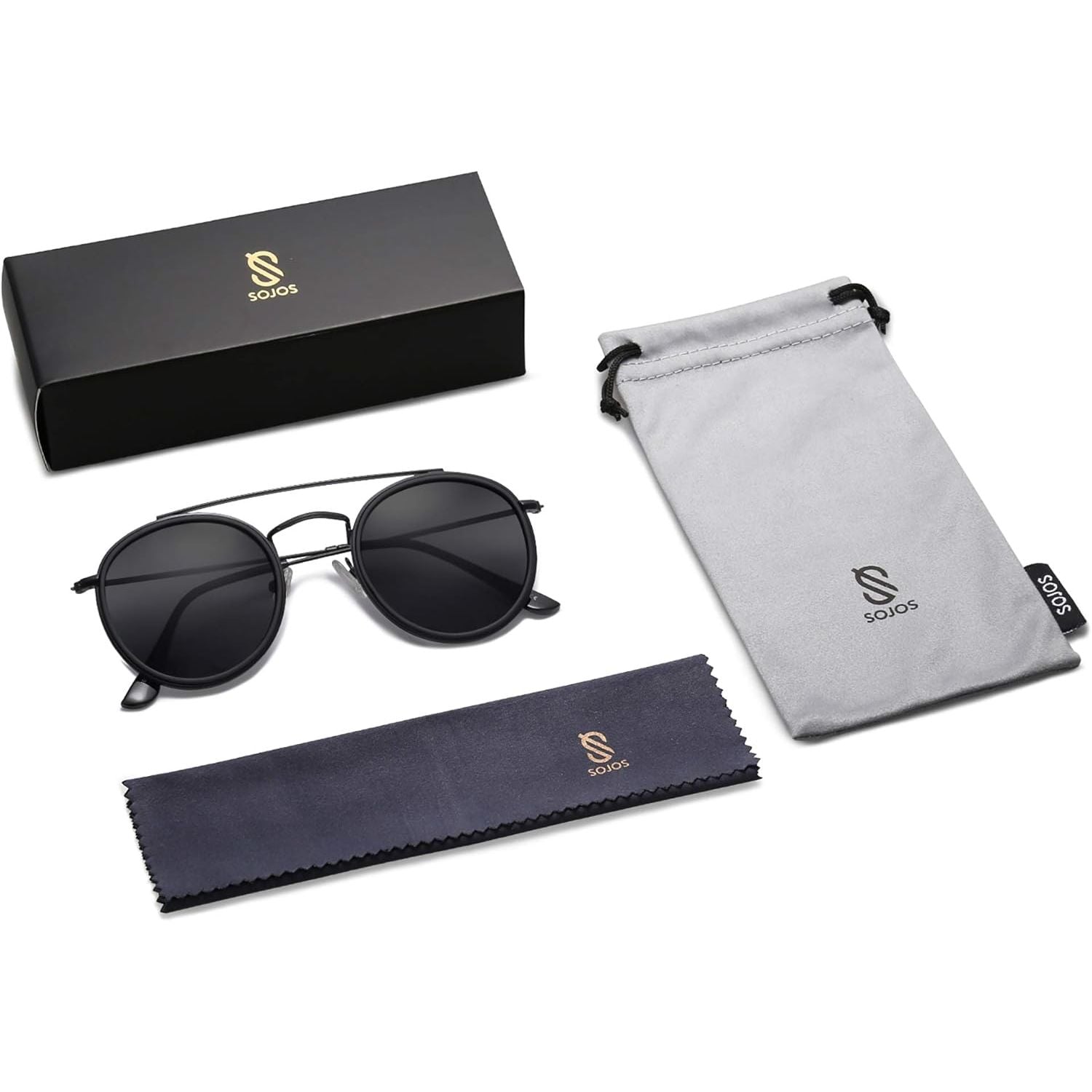 - SOJOS Retro Vintage Round Polarized Sunglasses for Women Men Small Double Bridge Circle Sunnies SJ1104