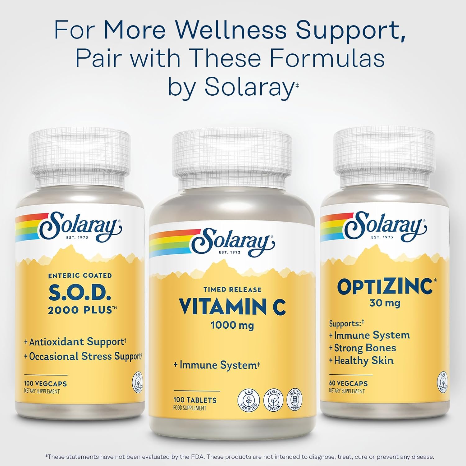 SOLARAY S.O.D. 2000 Plus - Superoxide Dismutase (SOD) and Catalase Antioxidant Supplement, Wellness Support - w/Green Tea Extract, Calcium, Rosemary, Grape Seed Extract, 60-Day Guarantee, 100 Servings