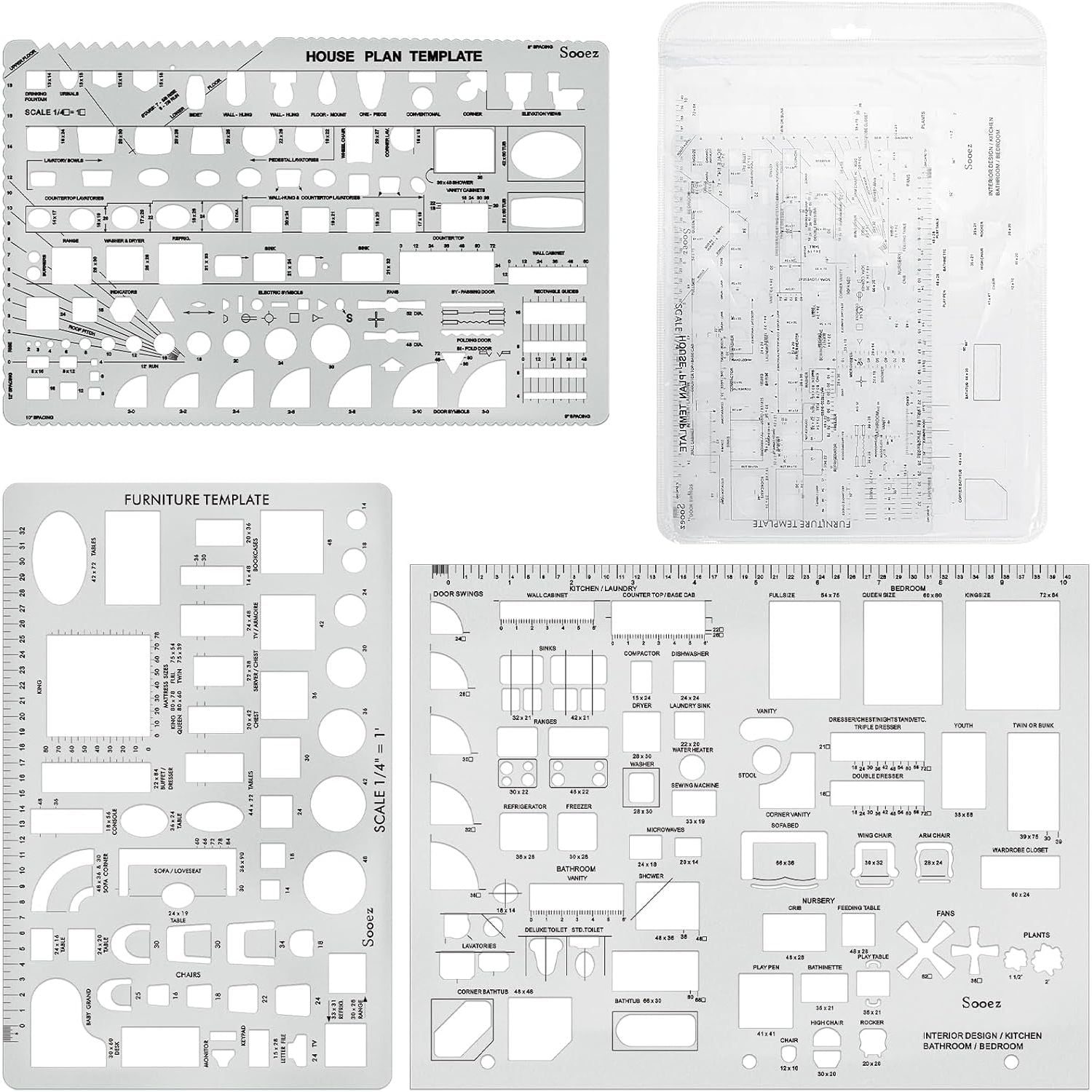 - Sooez Architectural Templates, House Plan, Interior Design and Furniture Template, Drafting Tools and Supplies - Set of 3