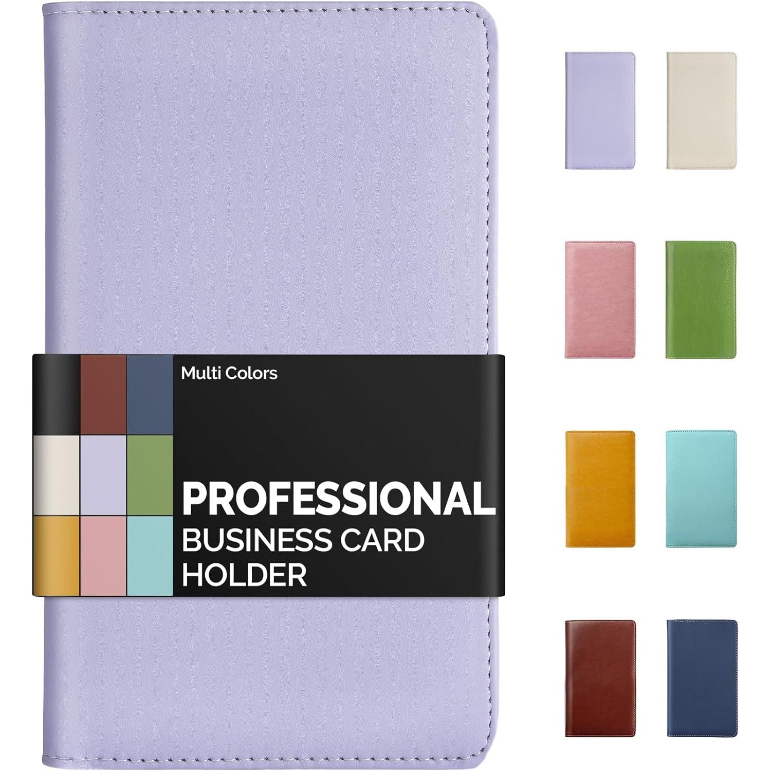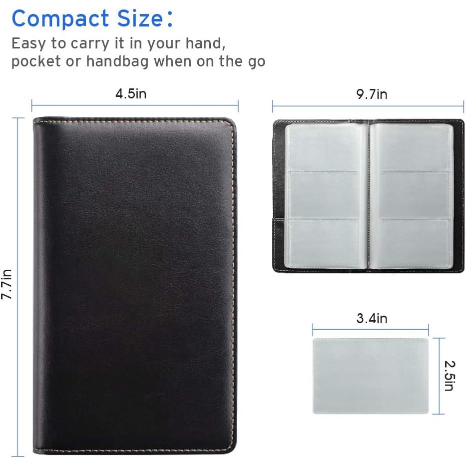 - Large capacity business card storage: This book-style business card organizer can hold up to 240 business cards, two cards back-to-back in each pouch. It is very compact & professional. Enough capacity for your different cards: business cards, credit card, social security, gift cards, insurance cards, name cards, personal IDs, mini photos, and more