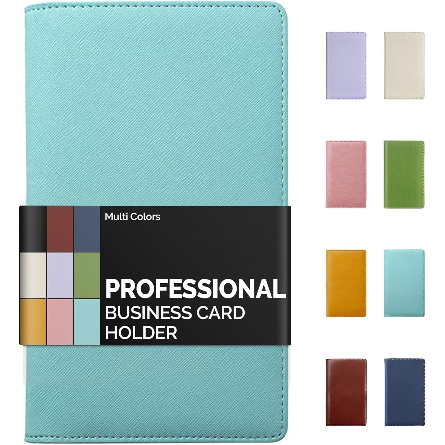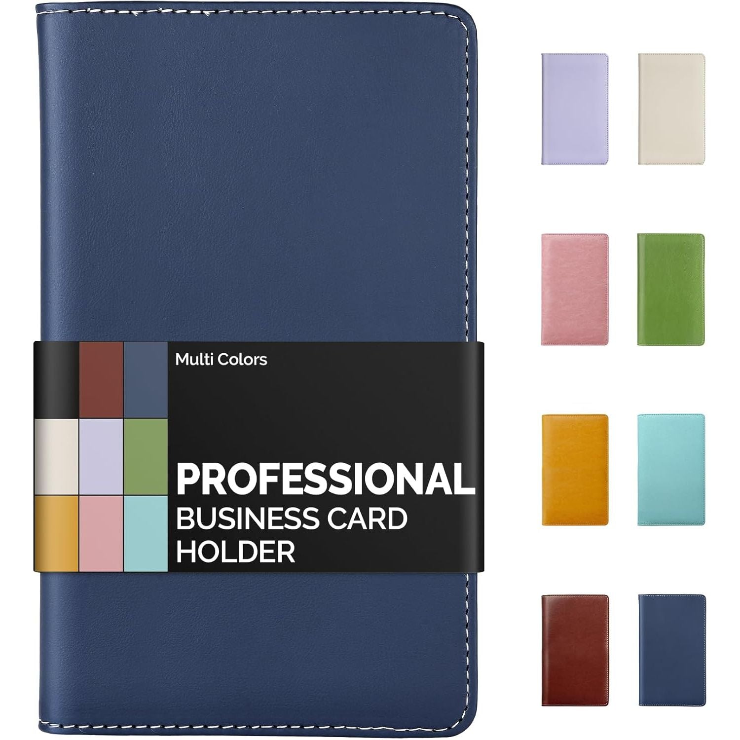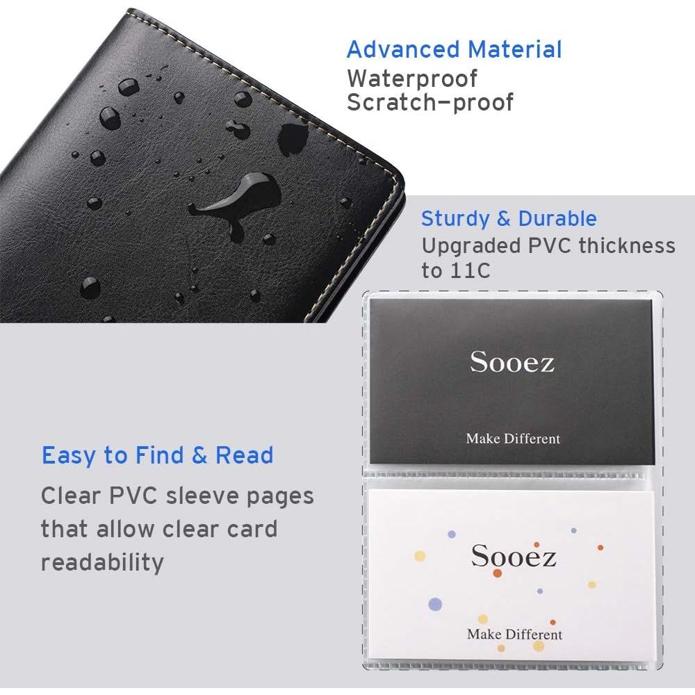 - Sooez Leather Professional Business Card Book Holder Organizer, 240 Capacity Credit Card Booklet, PU Name Cards Holder Storage File for Men Women, 7.7 x 4.5 Inch, Black