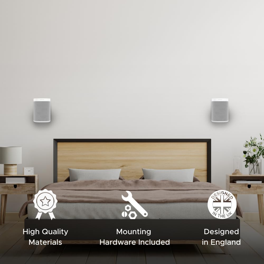- HIGH QUALITY - With 10mm wall clearance, this wall mount is precision engineered in 3mm aluminium, with a tough colour match powder coat finish in black or white that blends seamlessly with your SONOS ONE, ONE Gen 2, ONE SL, or PLAY:1 speaker.