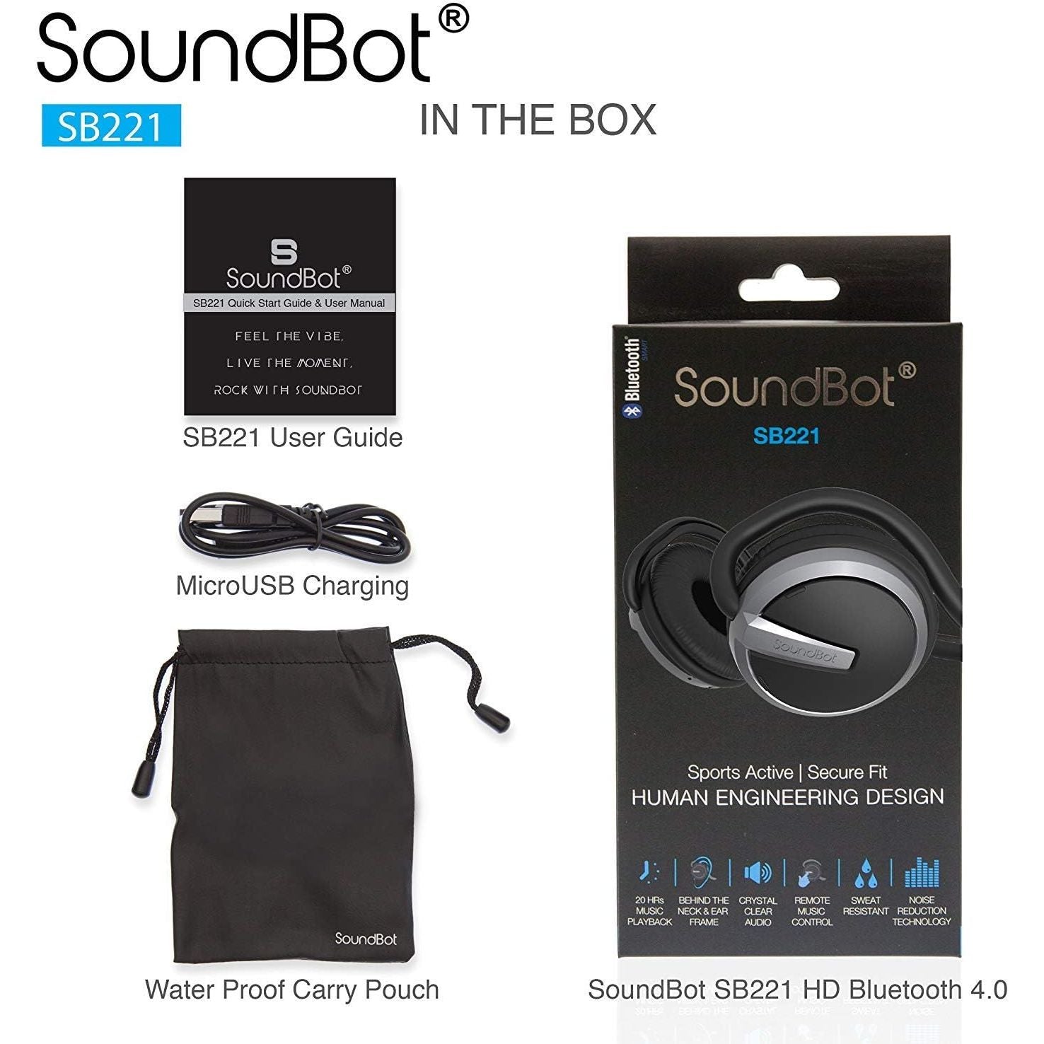 Soundbot SB221 HD Wireless Bluetooth 4.0 Sports-Active Headphones for 20Hrs Music Streaming & 25Hrs HandsFree Calling with Sweat Resistant Ergonomic Secure-Fit Design & Voice Command Support, Black