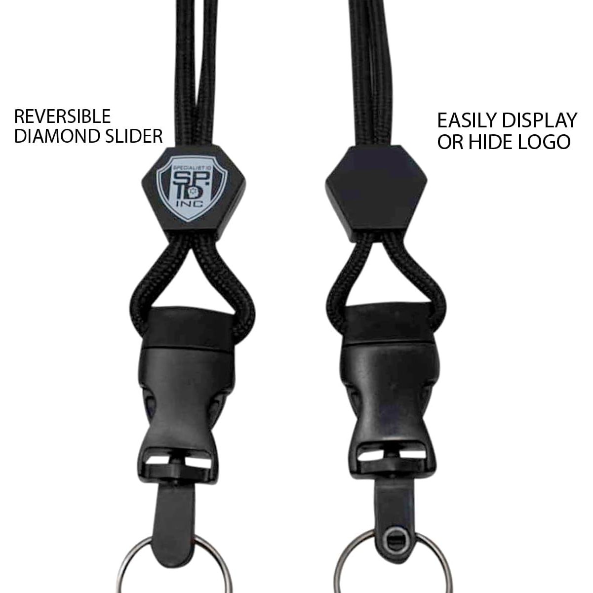 Designed for professionals who carry multiple ID cards. Keep up to 3 ID badges (CAC, Prox Card, TWIC, HID, Driver's License, etc.) who need door entry, gate opening, display, or computer access at work. Adjust your length or placement and have options to choose which badge is used by sliding the bottom corner tabs placed on the back side of the holder, as well as to display the SPID authentic logo on the lanyard slider, or have it shown as a solid black.