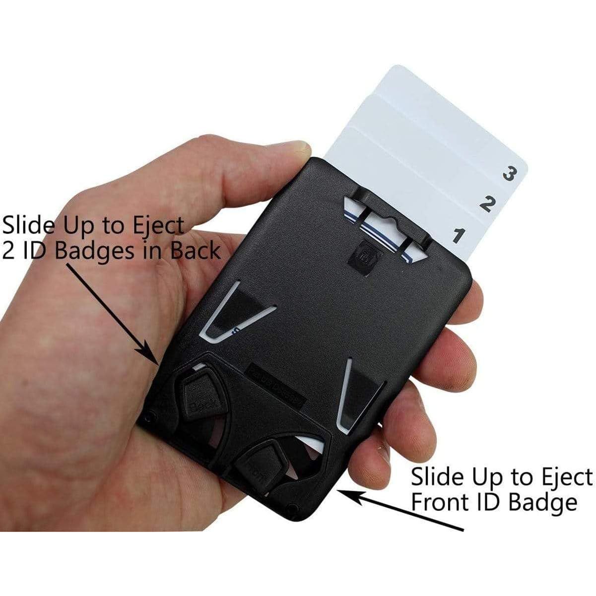 - CLEAR FRONT WINDOW - Front Badge Has Visible Display for Picture ID’s , Dual Thumb Lever on the Back Can Slide up Smart Chip Cards or Swipe & RFID Prox Access Cardbadges