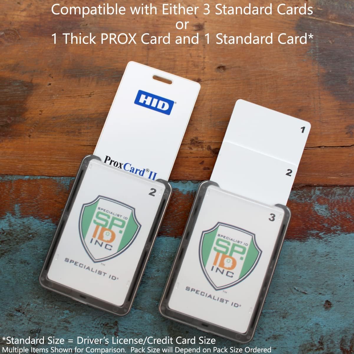 - TOP LOADING & FULLY ENCLOSED FOR 2 - 3 CARDS - All Cards Load from Top of Sturdy Rigid Case (Can Hold 3 Standard CR80 30 Credit / Drivers License Sized Badges) - SPID-9070