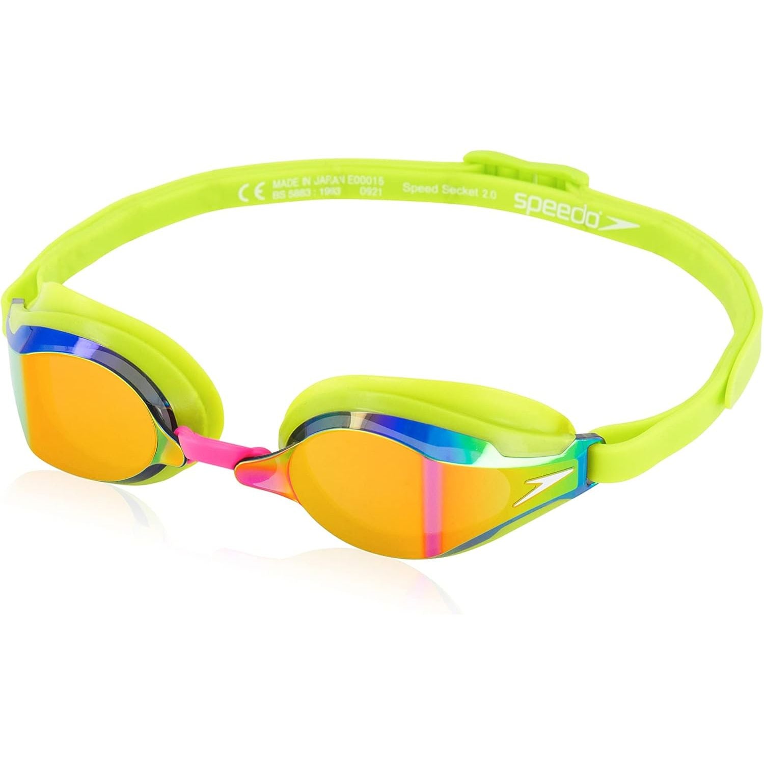Cut through the lanes with the Speedo® Speed Socket 2.0. Shatter resistant, polycarbonate lenses with a mirrored finish. Anti-fog lenses with 95+ UV protection. High nose bridge with 3 sizes included for a custom fit. G.O. FIT™ SYSTEM: INNER EYE FIT is a low-profile design designed to enhance peripheral vision. Silicone frame material for added comfort. Case included. Imported. Adult age range (ages 14+). Measurements: Eye Size: 32 mm Bridge: 26 mm Weight: 1 oz
