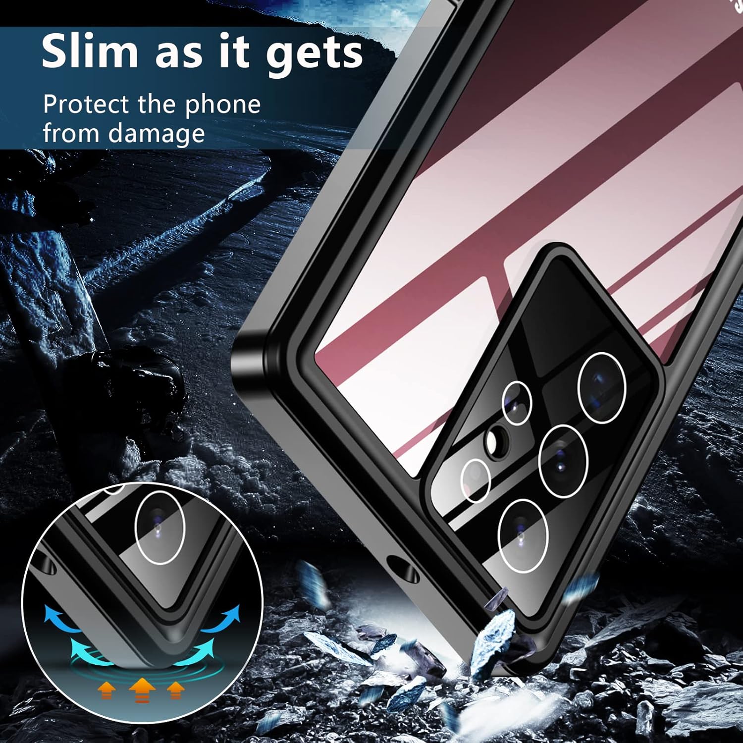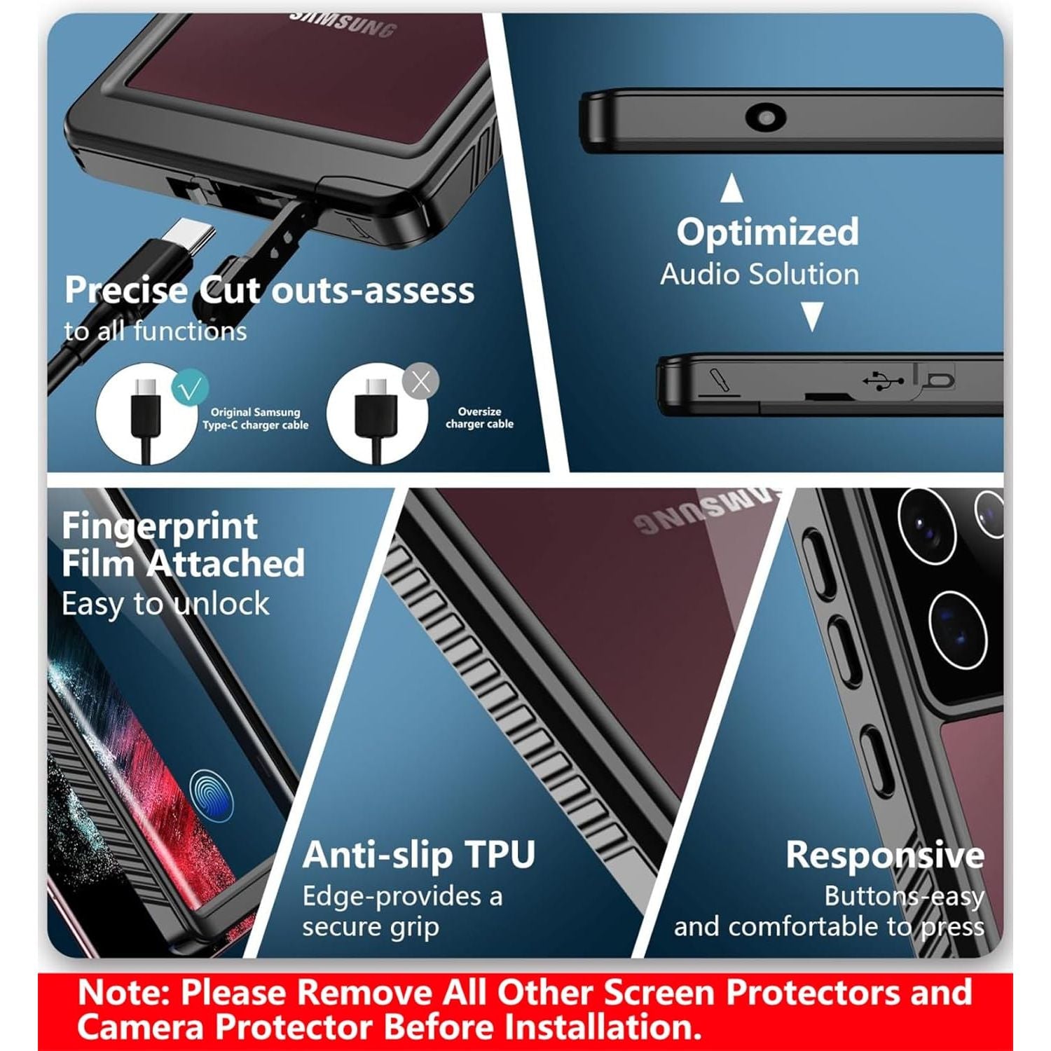 SPIDERCASE Designed for Samsung Galaxy S22 Ultra Case Waterproof, Built-in Screen Protector Full Protection Heavy Duty Shockproof Anti-Scratched Rugged Case, Black