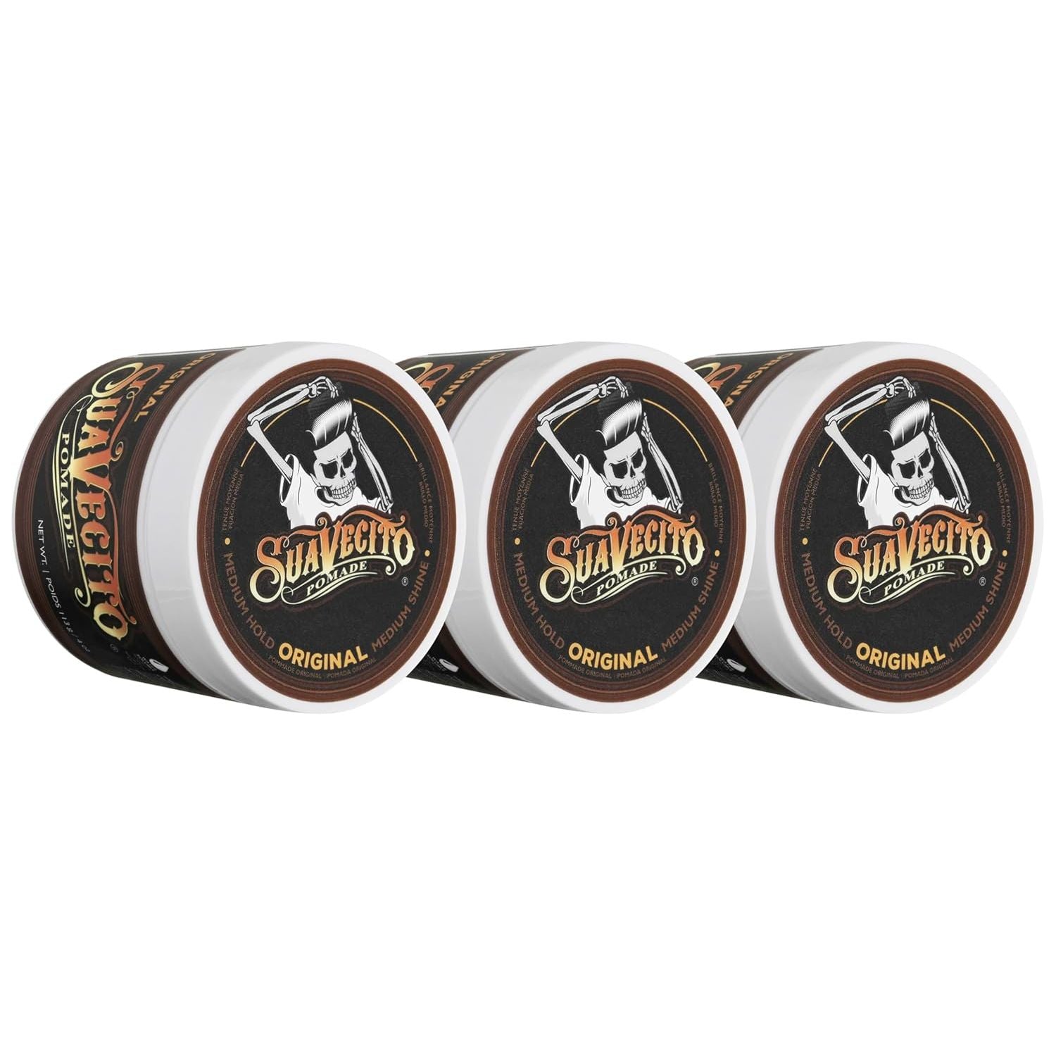 A pomade that is water based or water soluble is a hair product that utilizes a formula containing water. The uniqueness about it though is that it creates a product that breaks down easily making it both easy to apply and easy to get rid of. No special soaps or shampoos are needed to release it out of your hair. The consistency is creamy and smooth meaning it can be worked into your hair with ease. Grandfathers everywhere would have been very excited about this stuff back in the day. Water based pomades have risen in popularity not only because of their ease of use and ease of removal, but also because they do a fantastic job of holding hair in place. Achieve tight neat looks with ease. Whether you need a light hold for fine hair, a medium hold for average hair, or a strong hold for thick corse hair, we have you covered. Regardless of your choice in hold (Light Hold Pomade, Original Hold Pomade, Firme Hold Pomade), Suavecito's water based pomades are easy to scoop, easy to apply, and easy to wash out of hair. Original and Firme (Strong) Hold Pomade are now available in travel packs. Looking to avoid trouble with TSA? This will get you by! Just want to keep a little bit stashed at work for emergencies? These packs get it done.