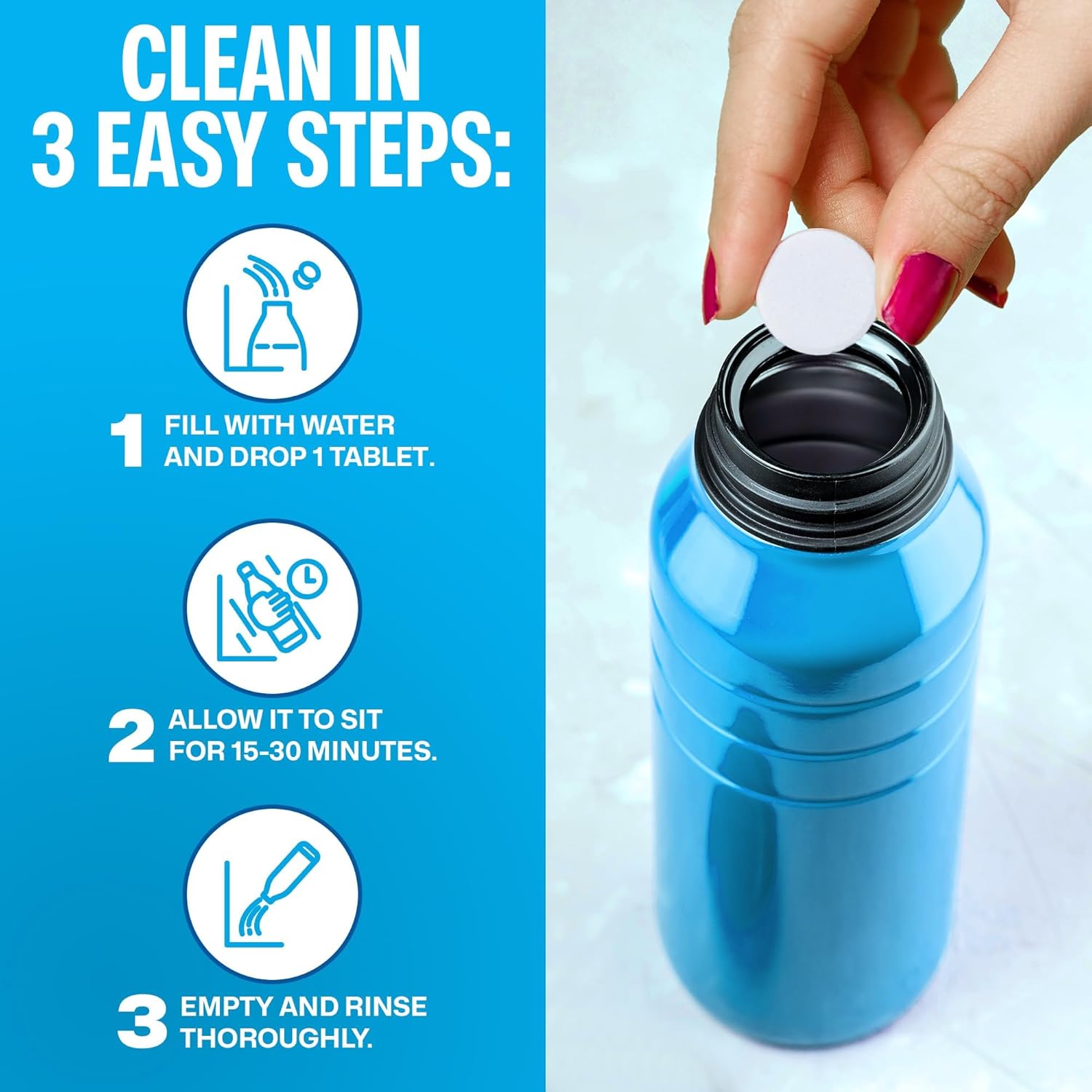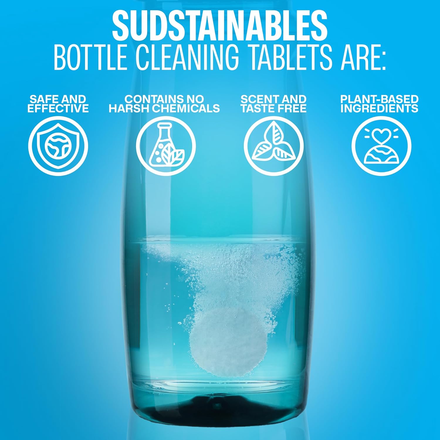 - Keep your bottles and hydration gear fresh with Sudstainables Water Bottle Cleaning Tablets. Each fast-dissolving bottle washer tablet works in minutes to remove stains, odors, and buildup—so your drinks always taste clean and refreshing.