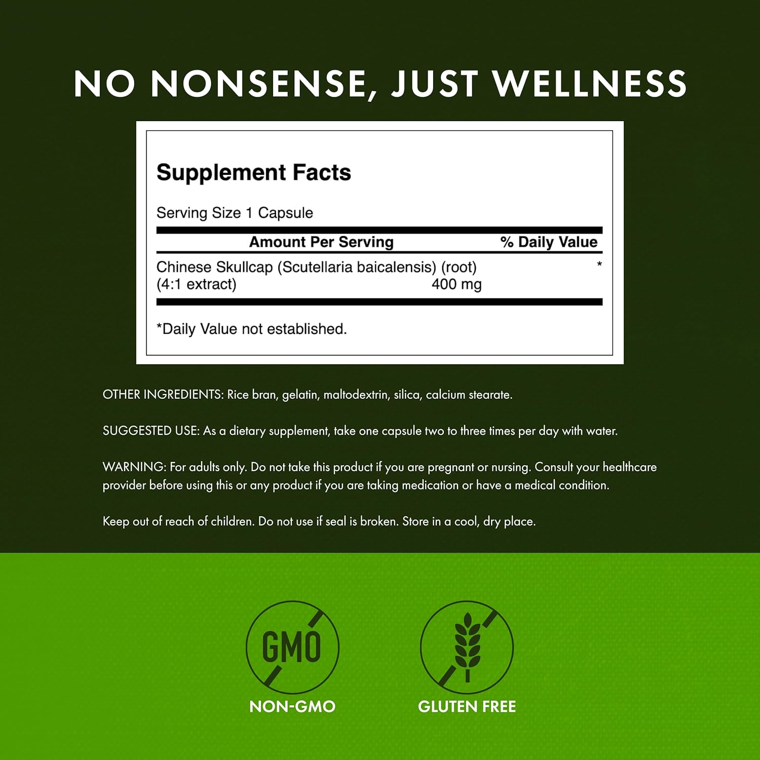 - Swanson Chinese Skullcap - Herbal Supplement Promoting Relaxation & Sleep Support - Flavonoid Formula to Help Soothe Nerves - (90 Capsules, 400mg Each)