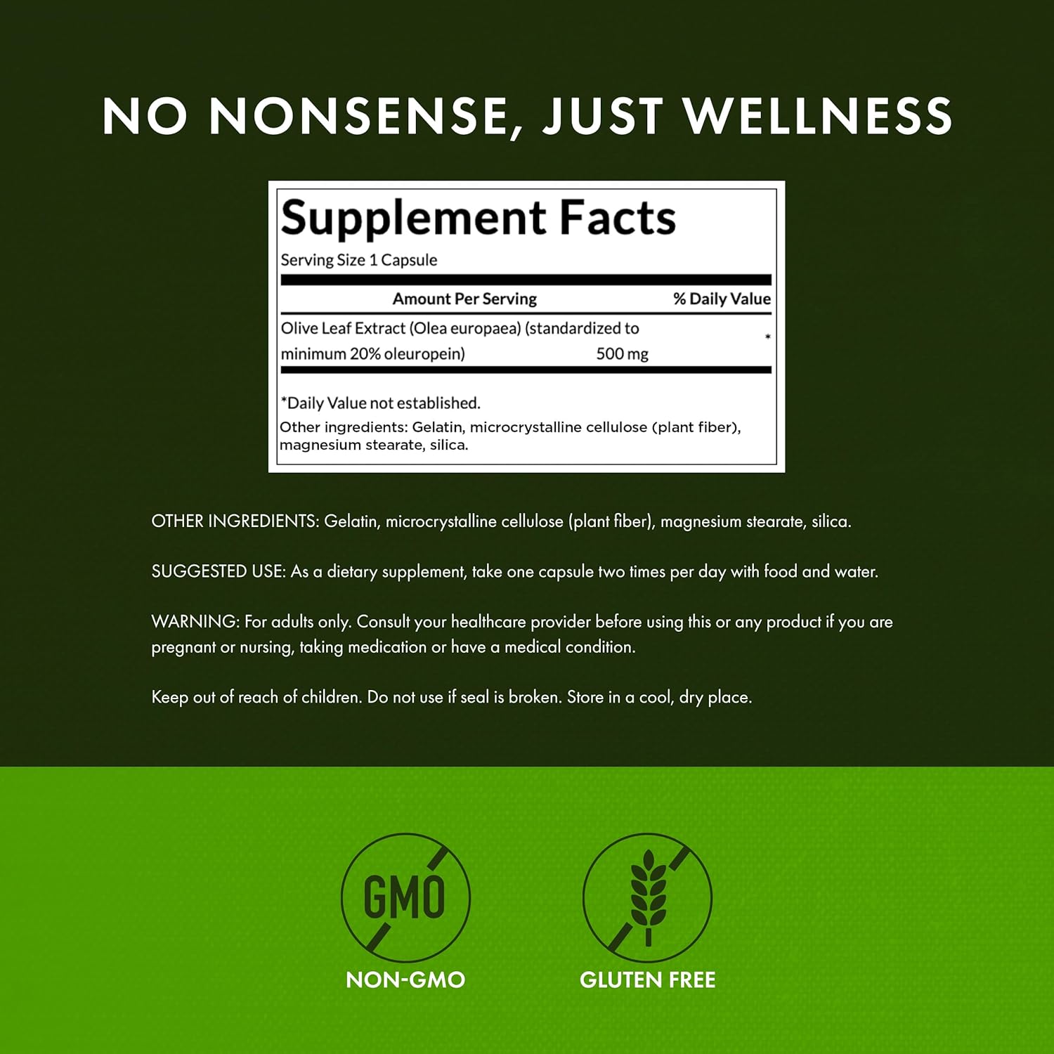 - Swanson Olive Leaf Extract Capsules with 20% Oleuropein - Provides Immune Support, Promotes Cardiovascular System Health, and Supports Healthy Blood Pressure - (120 Capsules, 500mg Each)