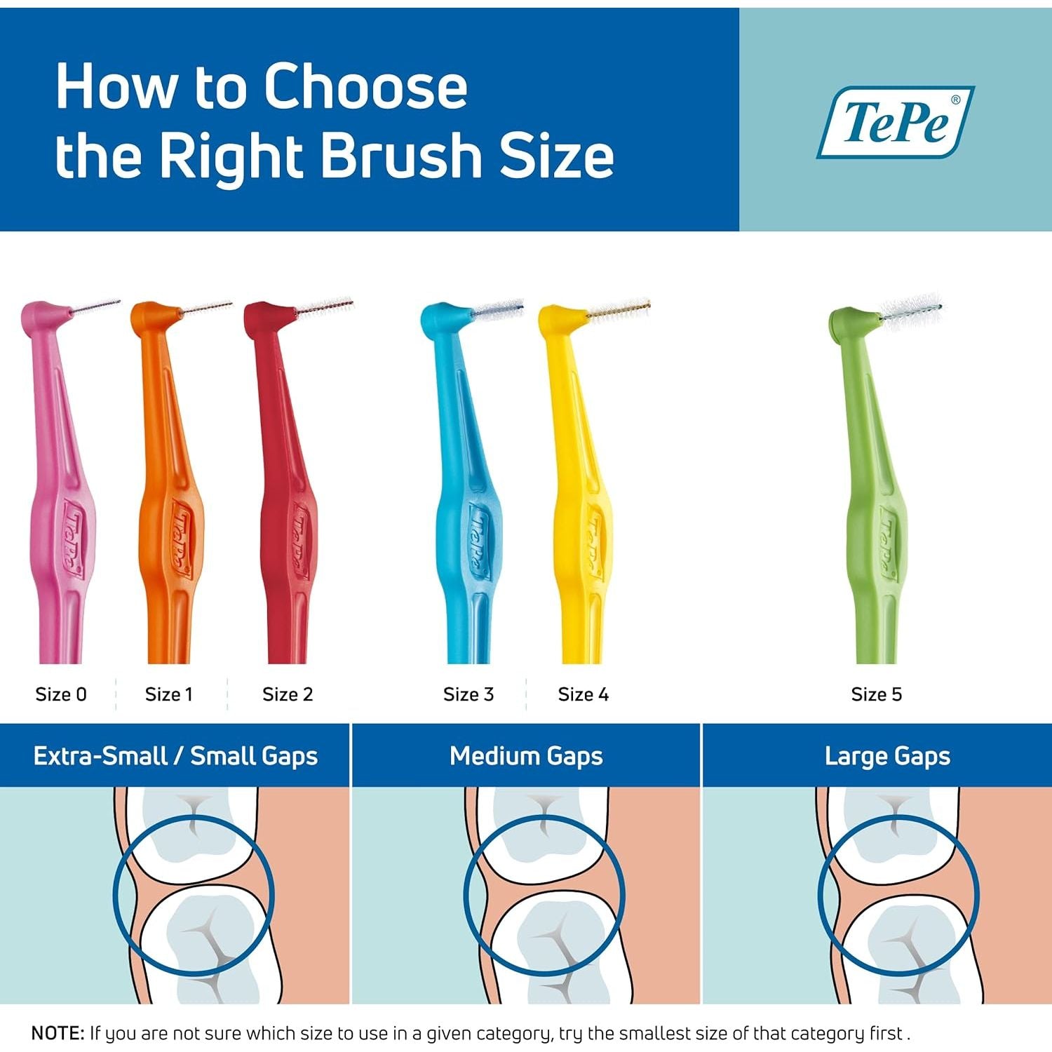 - TEPE Interdental Brush Angle, Angled Dental Brush for Teeth Cleaning, Pack of 6, 0.8 mm, Large Gaps, Green, Size 5
