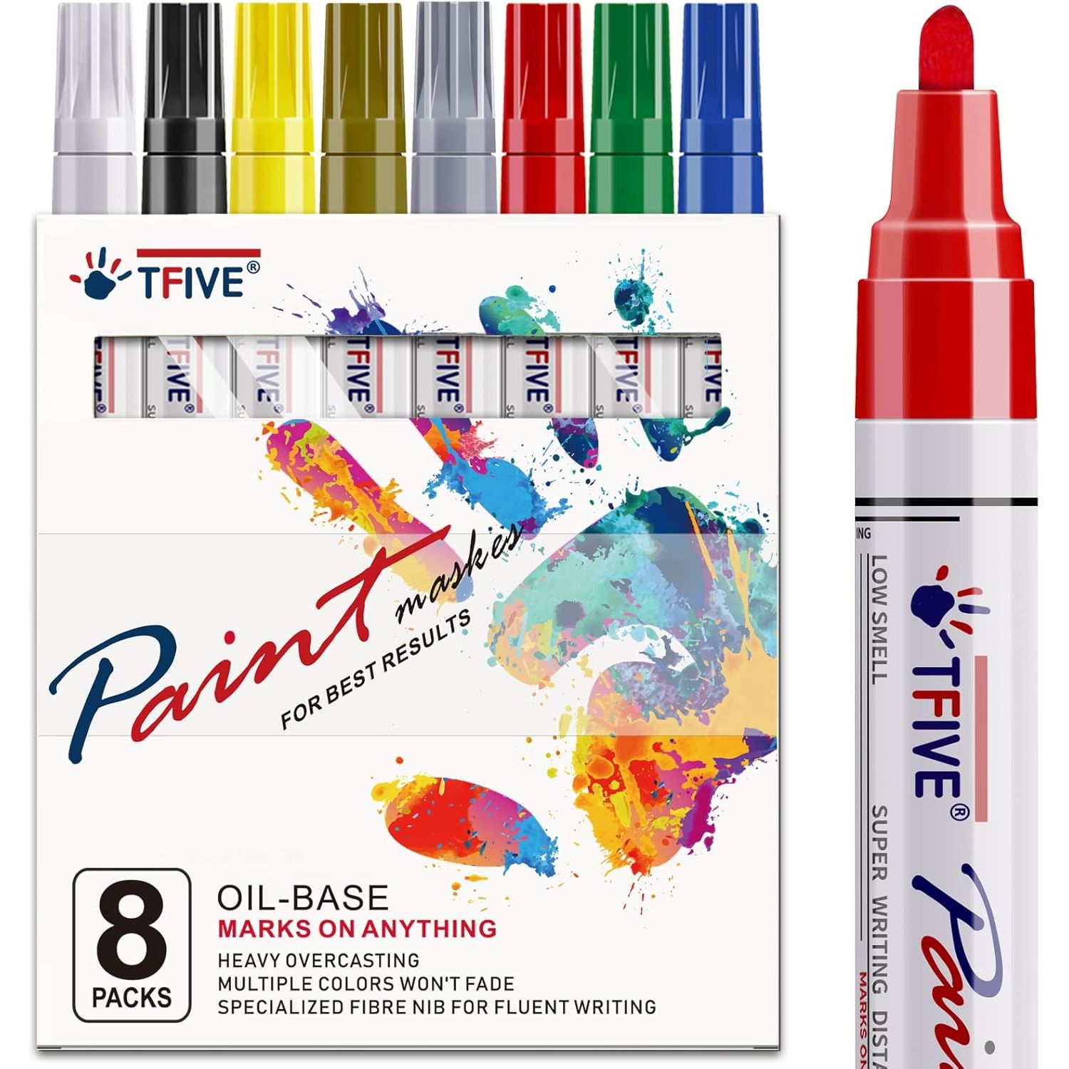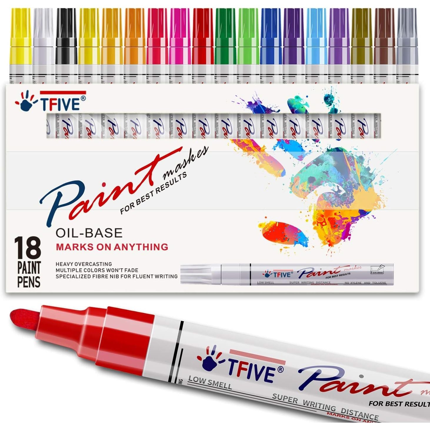 - Premium Paint Pen: TFIVE paint markers use vivid and opaque ink that can write on almost any surface. The ink is oil based, nontoxic, low odor, quick-dry and waterproof. Designed for adults, students, artists, and professional designers alike