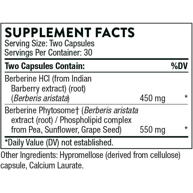 - THORNE - Berberine - Dual Action Formula with Phytosome Plus Botanical Extract - Support Heart Health, Immune System, Healthy GI, Cholesterol* - Gluten-Free, Dairy-Free - 60 Capsules - 30 Servings