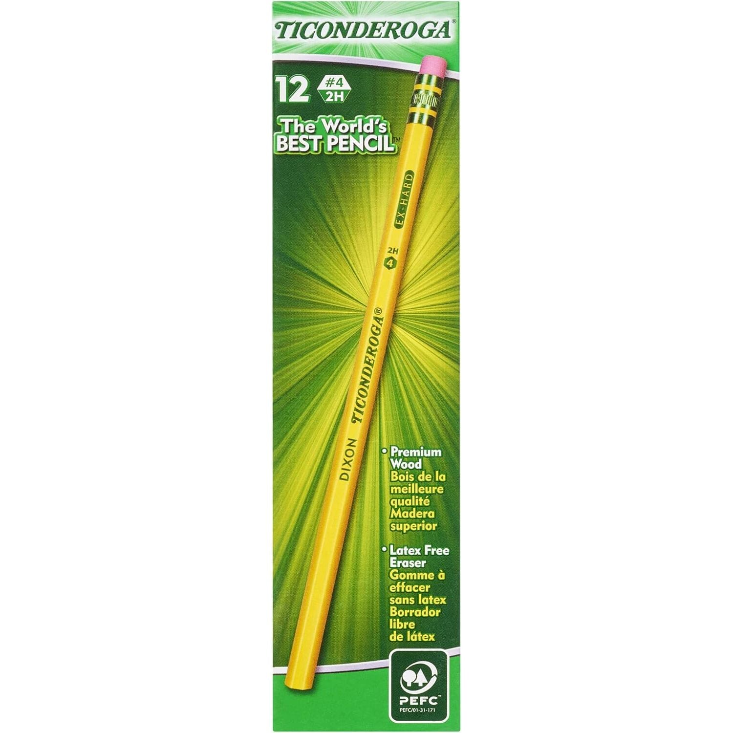 Ticonderoga has a tradition of fine quality writing instruments in the US for over 100 years. The exclusive graphite core features a proprietary formula focusing on graphite mined from carefully controlled sources to deliver extra smooth performance. Top-quality latex-free erasers remove marks completely without smudging. Premium wood harvested from responsibly managed sources provides smooth, even sharpening with minimal breakage. Teachers prefer Ticonderoga for its dependability and craftsmanship. When only the best will do, choose Ticonderoga brand pencils.
