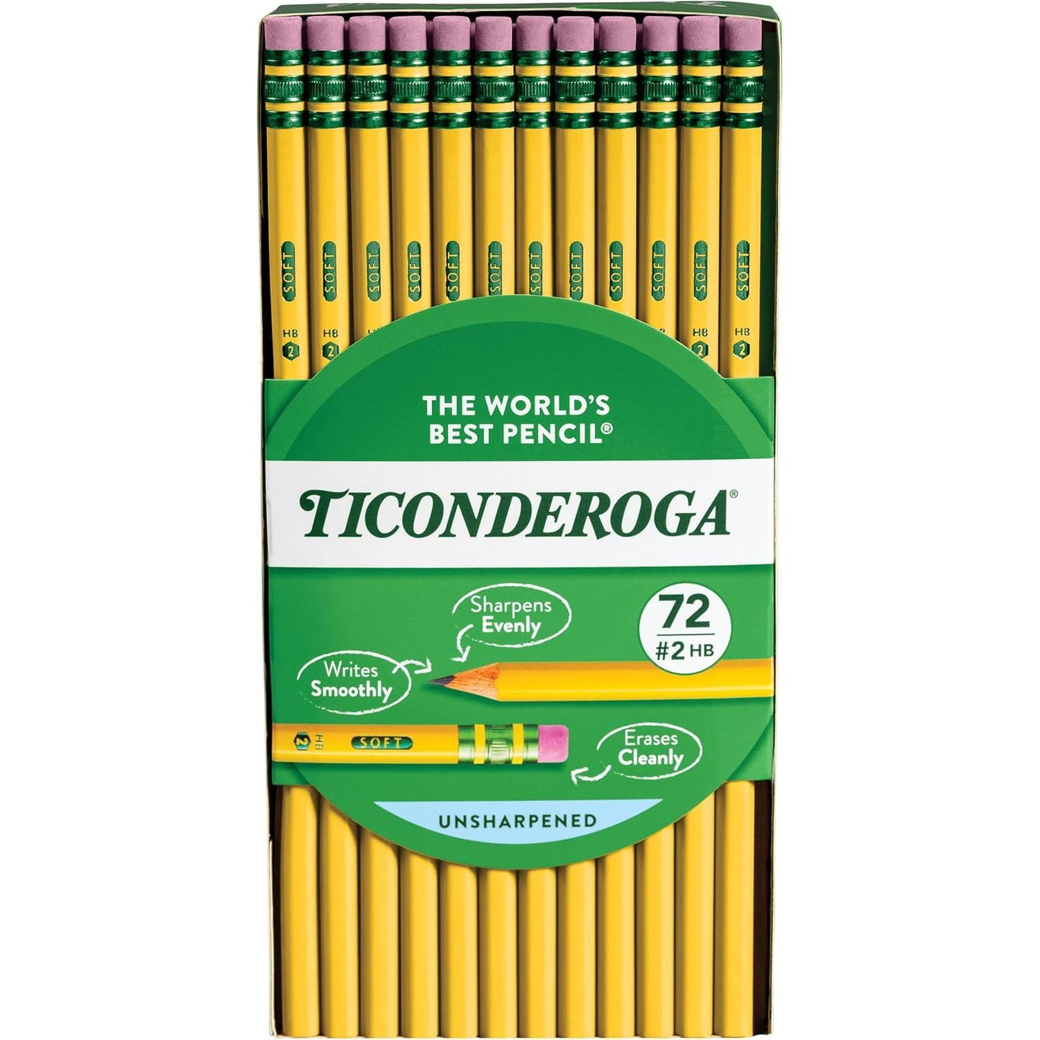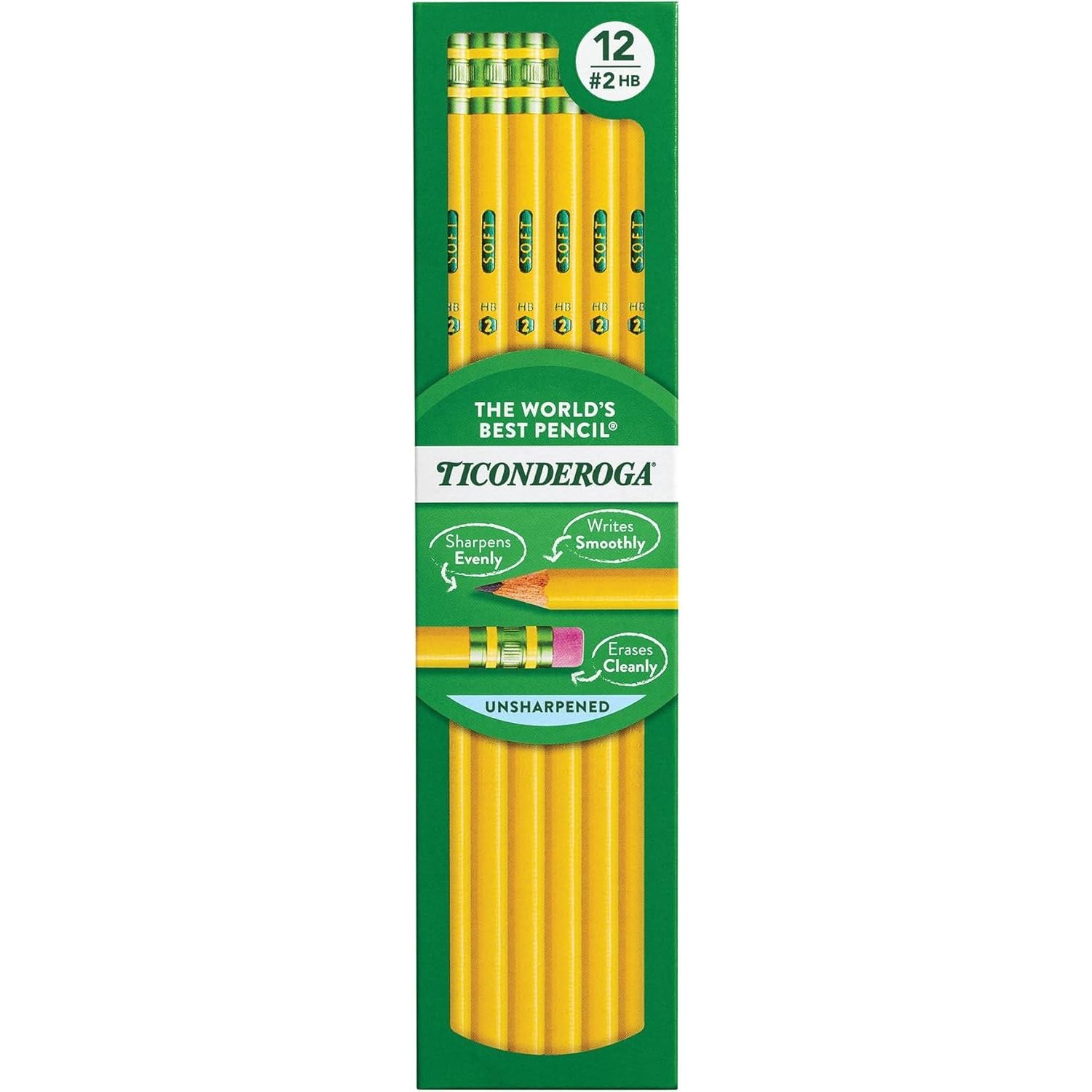 - Ticonderoga Wood-Cased Pencils, Unsharpened, 2 HB Soft, Yellow, 24 Count