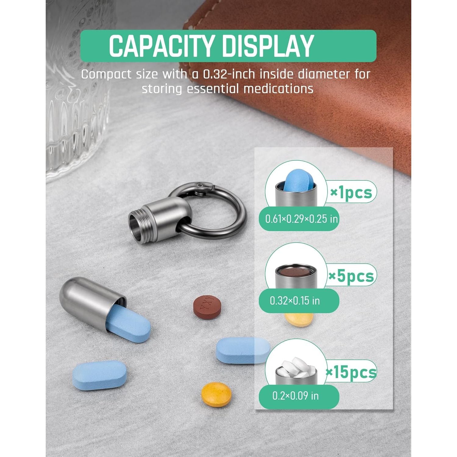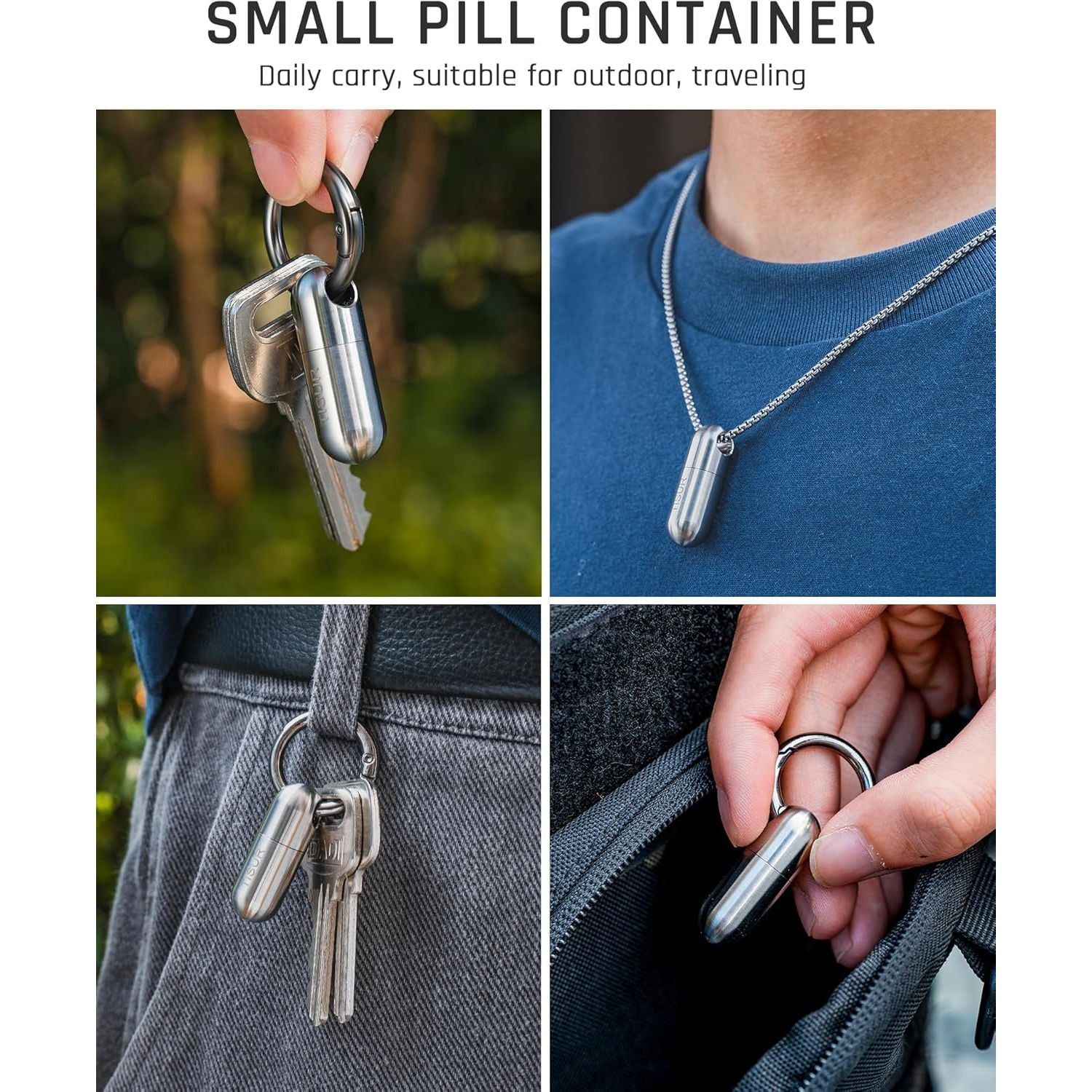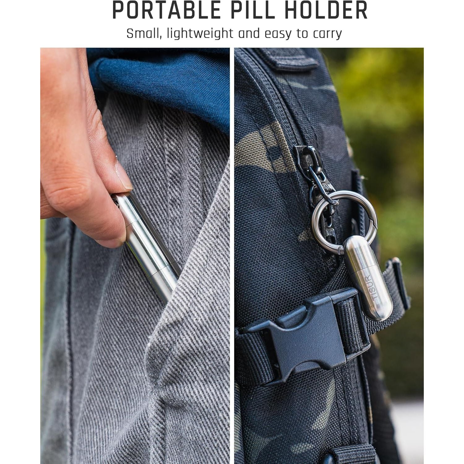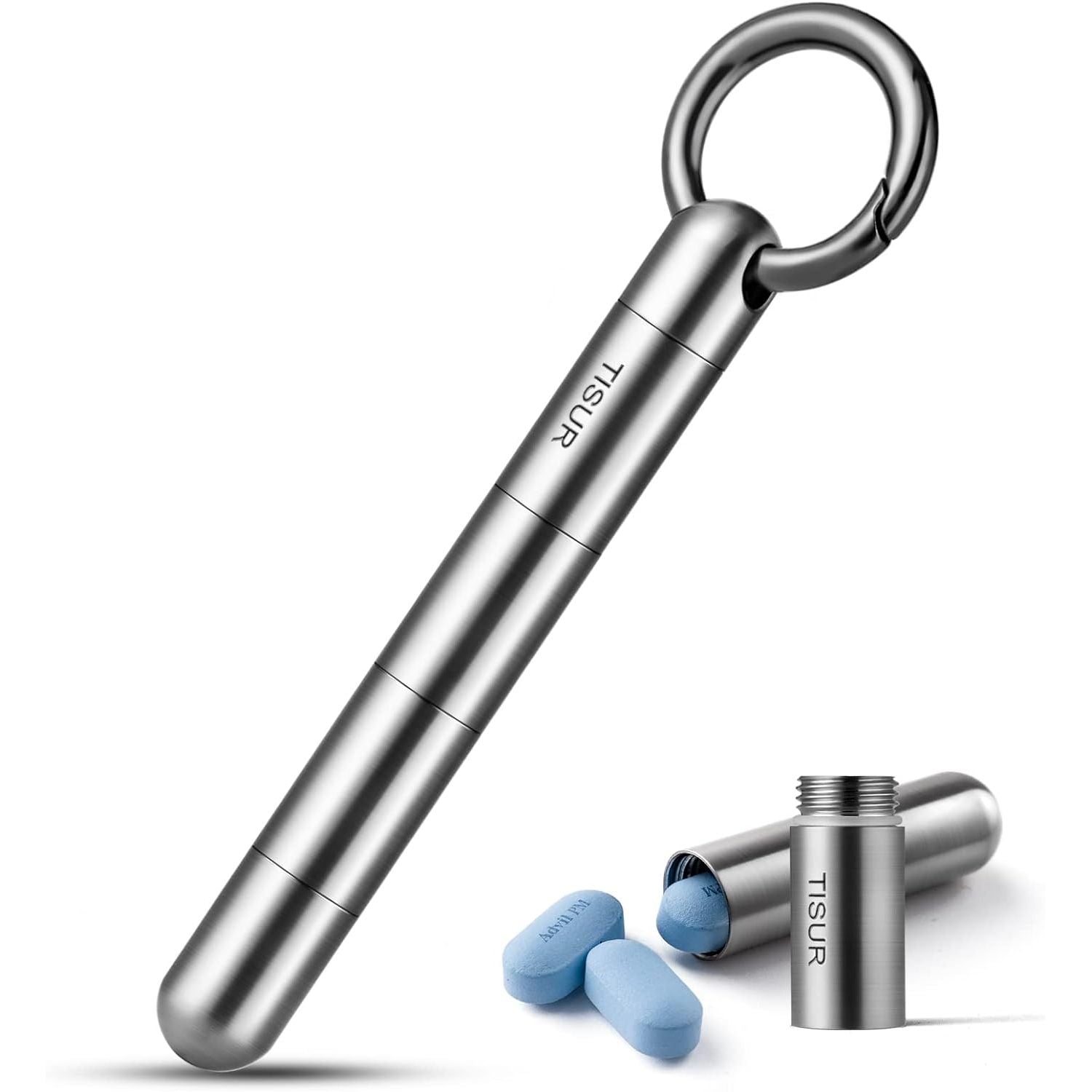 - TISUR Micro Keychain Pill Holder, Titanium Pill Case Waterproof Pill Container, Portable Tiny Pill Organizer for Travel Purse Pocket