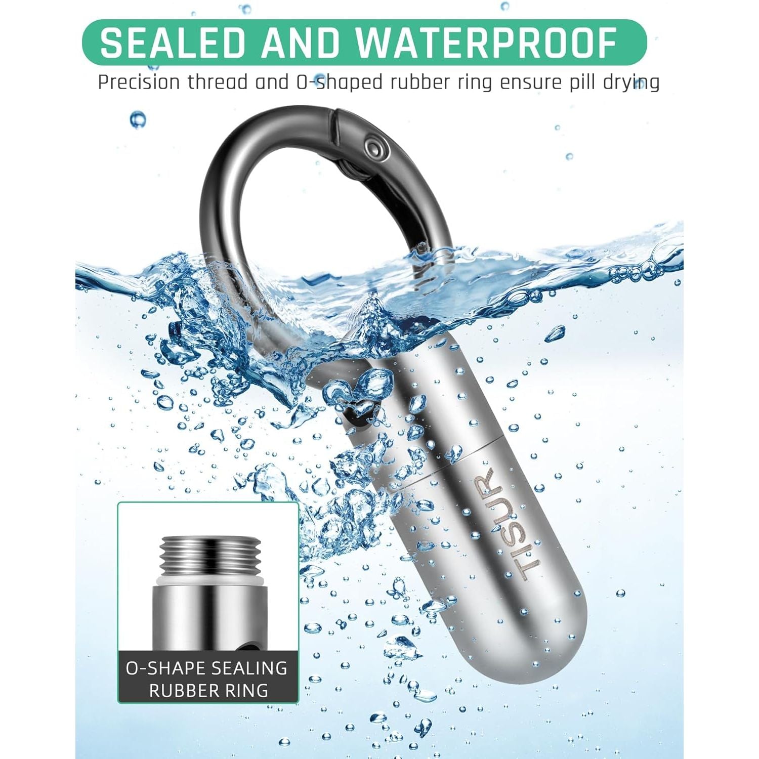 Precision threads and O-ring sealing rubber ring keep pills dry and safe even in wet environments.