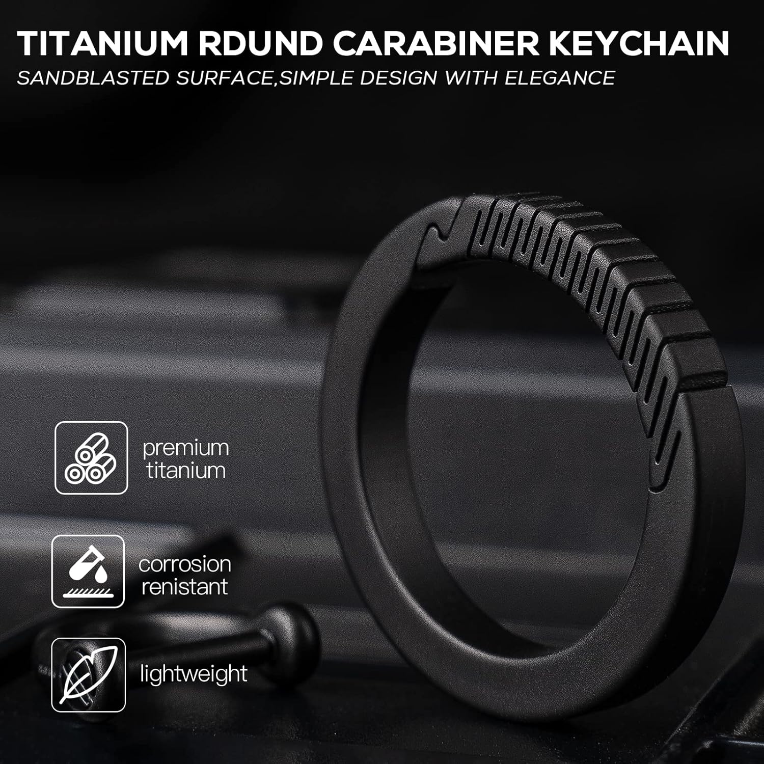 TISUR Titanium Round Carabiner Clip, Spring Hook Key Chain Ring, Small Keyring Carabiner with D-Ring for Car Keys