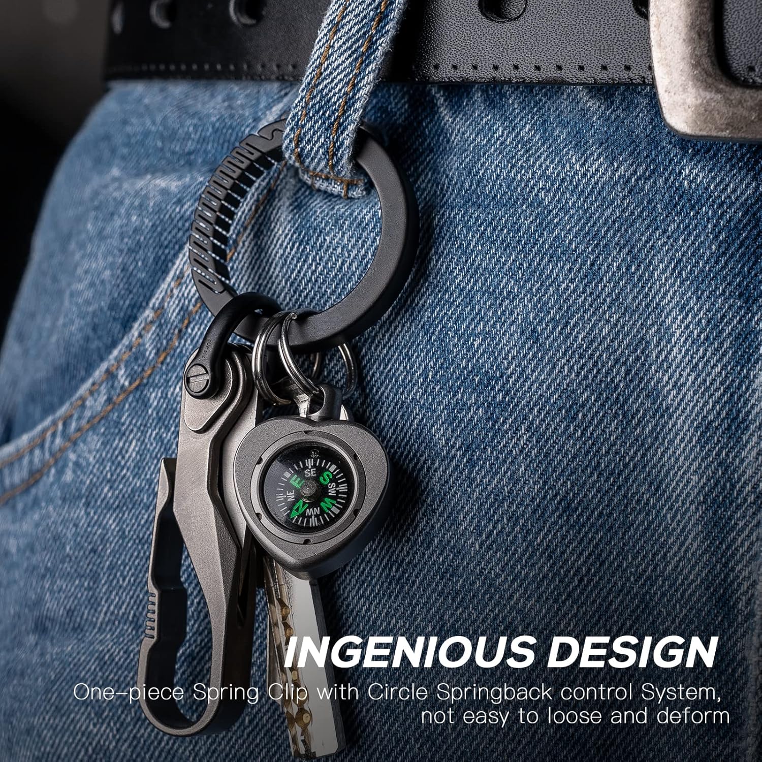 • SUPER SAFE,WORRY-FREE: Titanium Key Clip Innovative spring structure created using titanium’s tensile strength. One-piece Spring Clip with Circle Springback control System, not easy to loose and deform; Clip interlock design ensure a safety lock, no worry for losing keys any more.