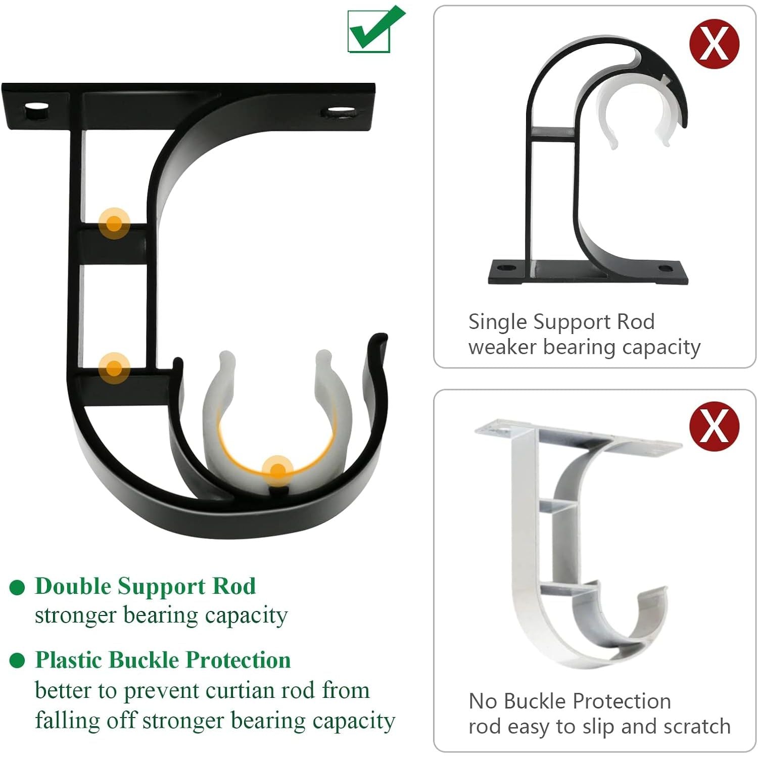 - [Elegant Appearance] – 1 inch curtain rod brackets feature a sleek, burr-free design with exquisite paint that resists rust. Black curtain rod holder complement various curtains and décor, keeping your room’s colour scheme harmonious.