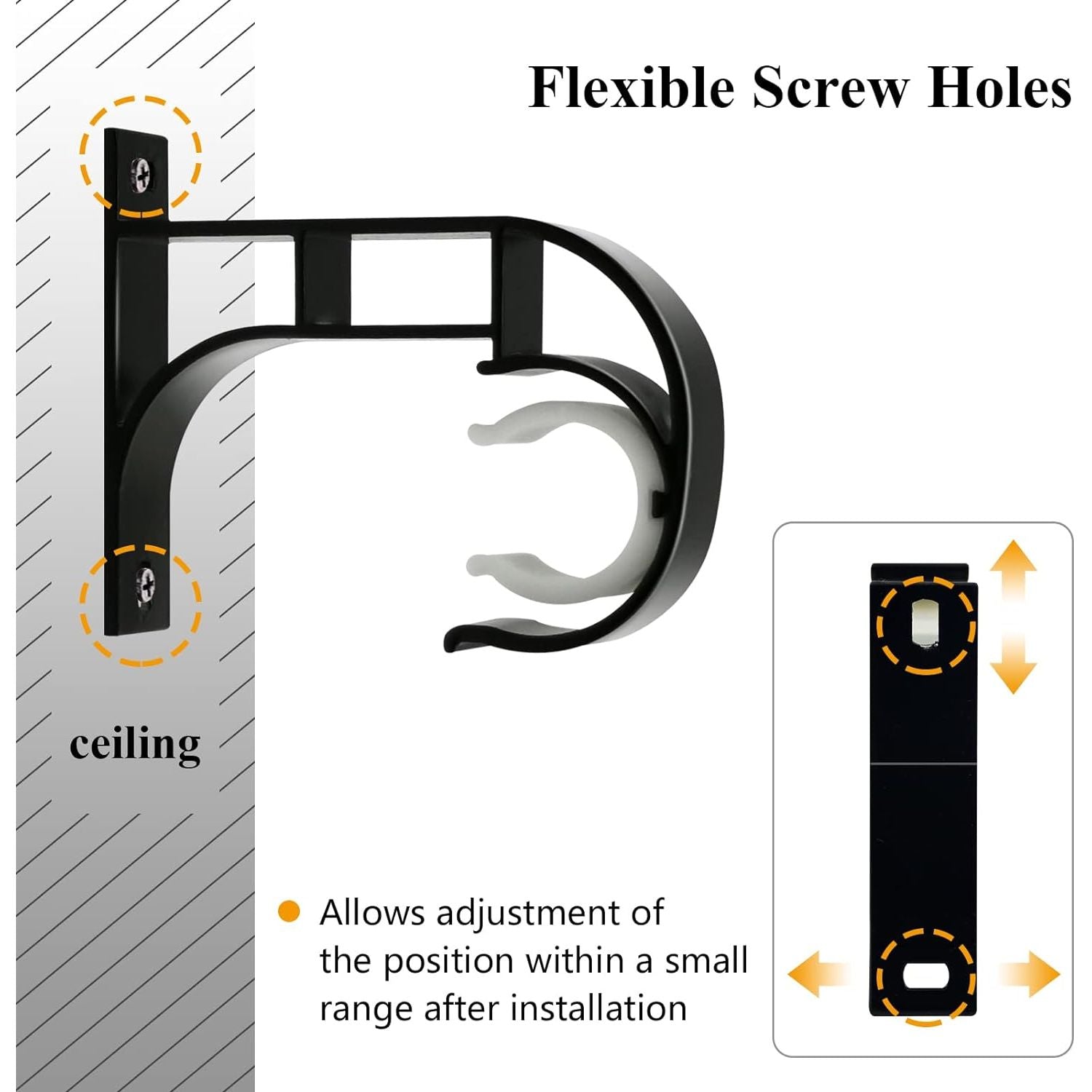 - [Ceiling Mount Curtain Rod Bracket] – Includes 4 ceiling curtain rod holder and all accessories for easy top-mount installation. Ideal for saving wall space or installing curtains where side walls are narrow, uneven, or absent.