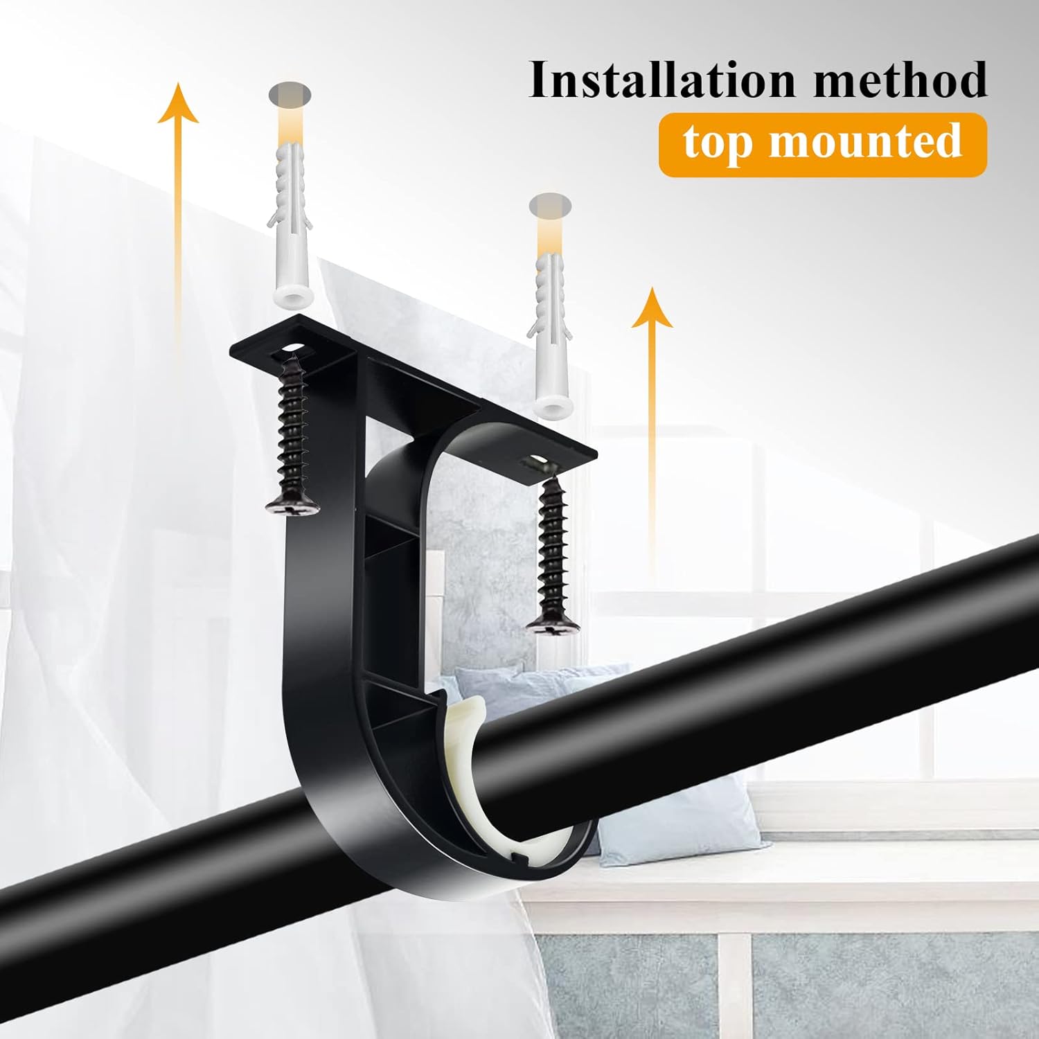 - TOKPLNU Ceiling Curtain Rod Bracket, 4 Pack Heavy Duty Curtain Rod Holders, Aluminum Alloy, Black Ceiling Curtain Hooks Hangers Fit for 1 Inch Drapery Rods
