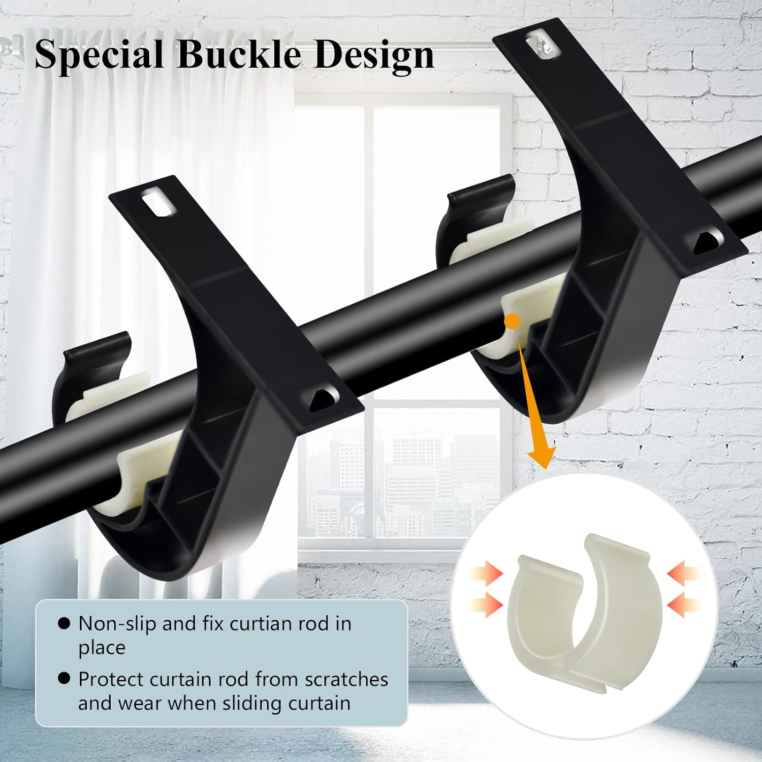 - [Unique Buckle Design] -- Ceiling curtain rod bracket features a removable plastic clip to secure and protect rods from scratches. Fits 1 INCH diameter drapery rods; please measure before purchase.