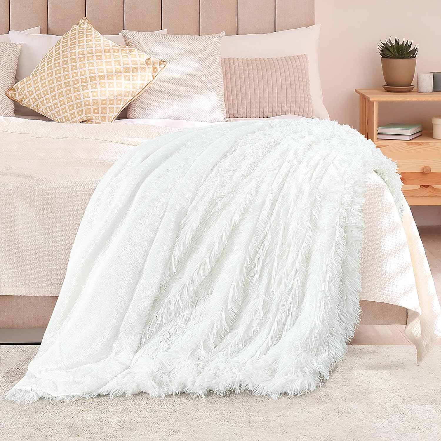 The fluffy blanket white color of the blanket is very similar to the light-yellow cream in actual products, and buyers can use it as a reference.