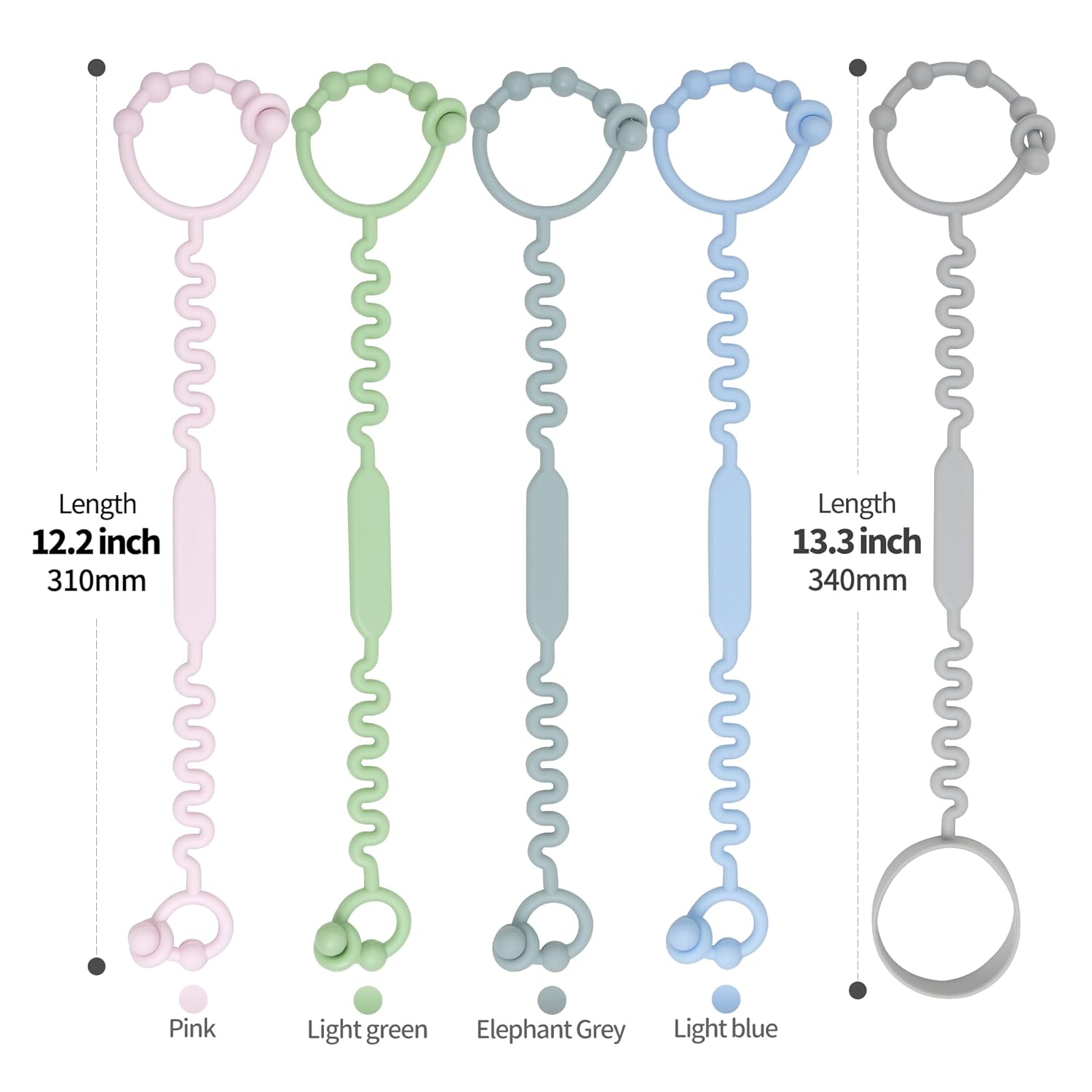 - ✔Humanized Design: Adjustable buckle design, stretchable toy strap for baby with double buckle and adjustable strap design, one-piece design, no risk of parts falling off, toy holders can be adjusted to the right size at will, no matter it is finger size or baby wrist size.